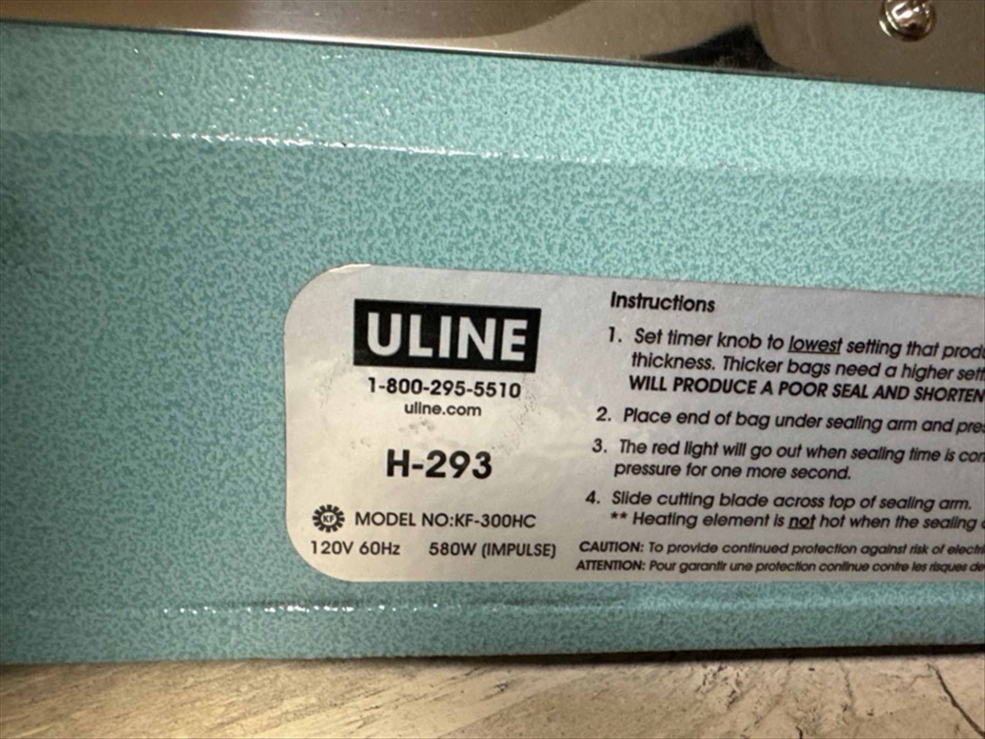 Uline Mod. H-293 Impulse Sealer W/Cutter, 12 in. [Loc. Henry]
