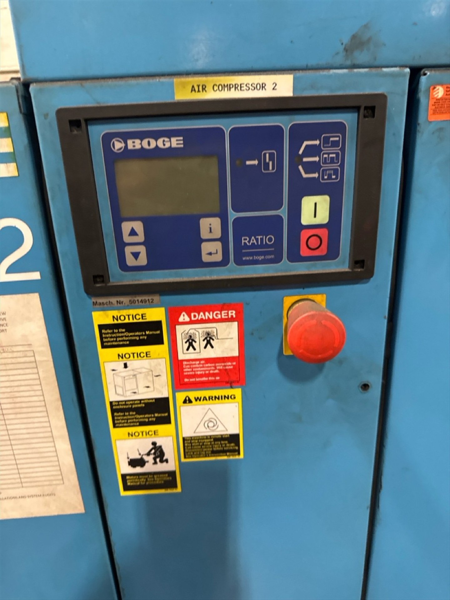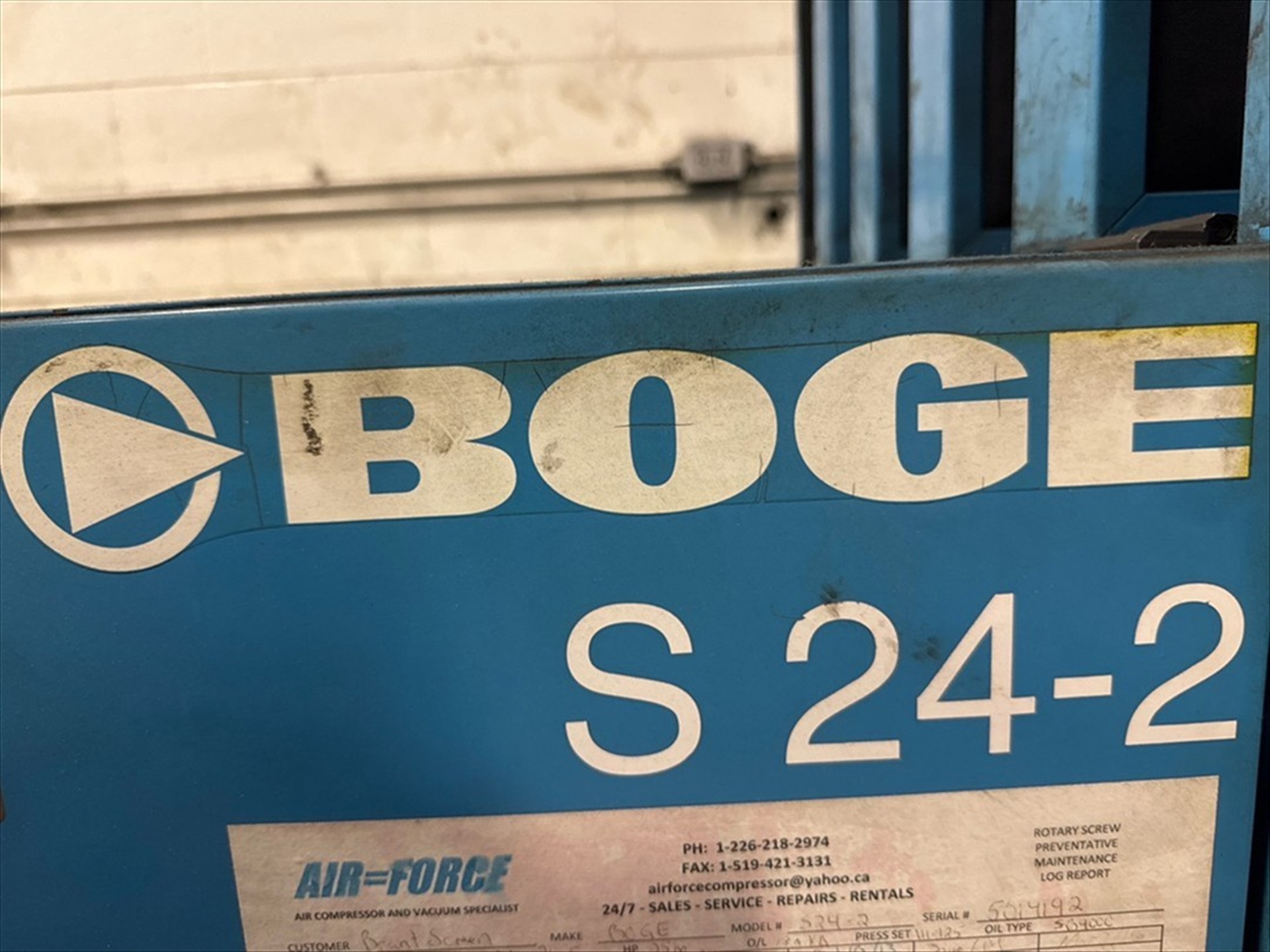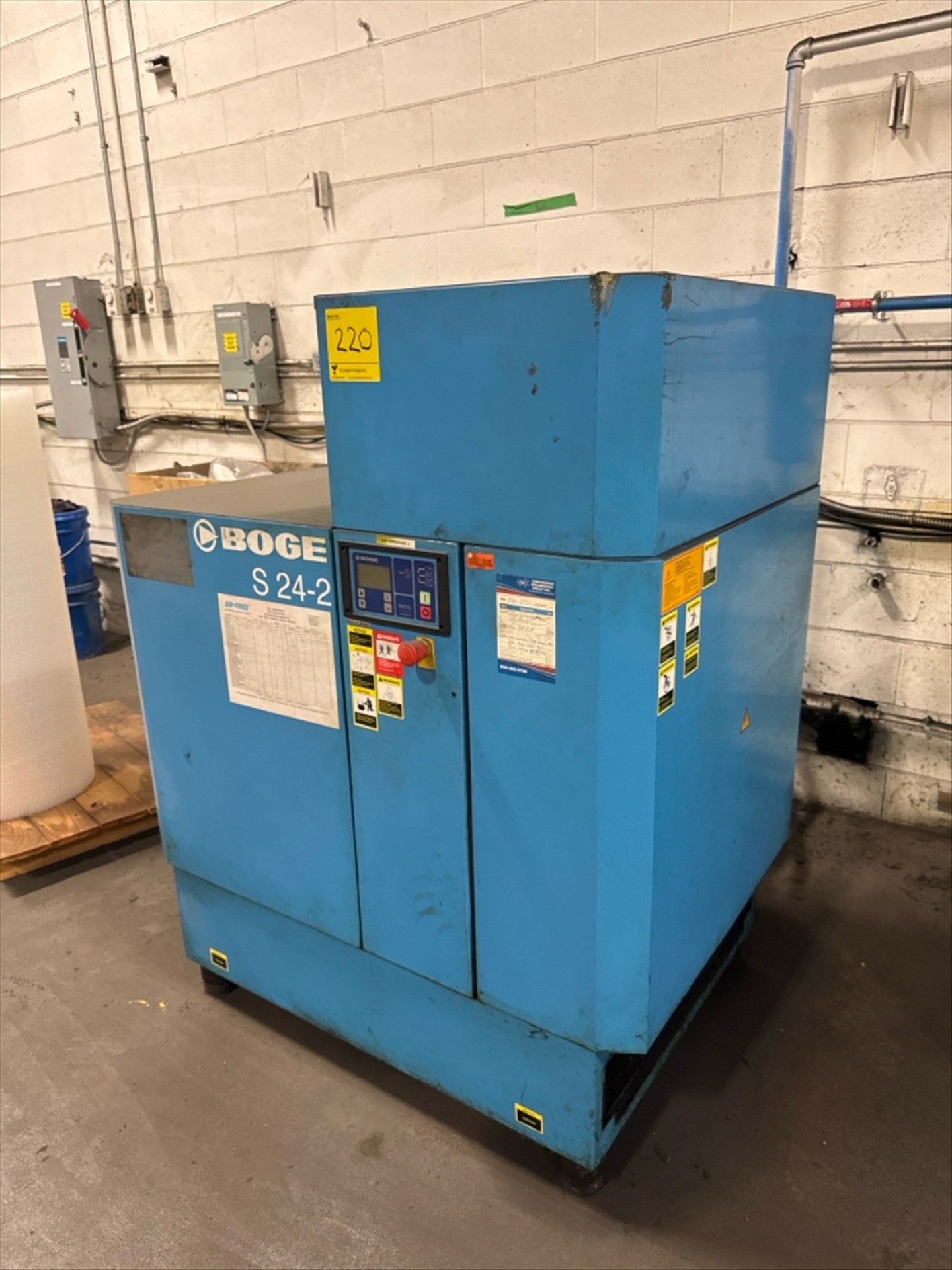 Boge Mod. S24-2 Rotary Screw Air Compressor, 25-Hp, W/ Manchester Vertical Air Tank, 240-Gallon Cap., 200-Psi (2006), Ser. No. 5014912 (2007) [Loc. Henry]