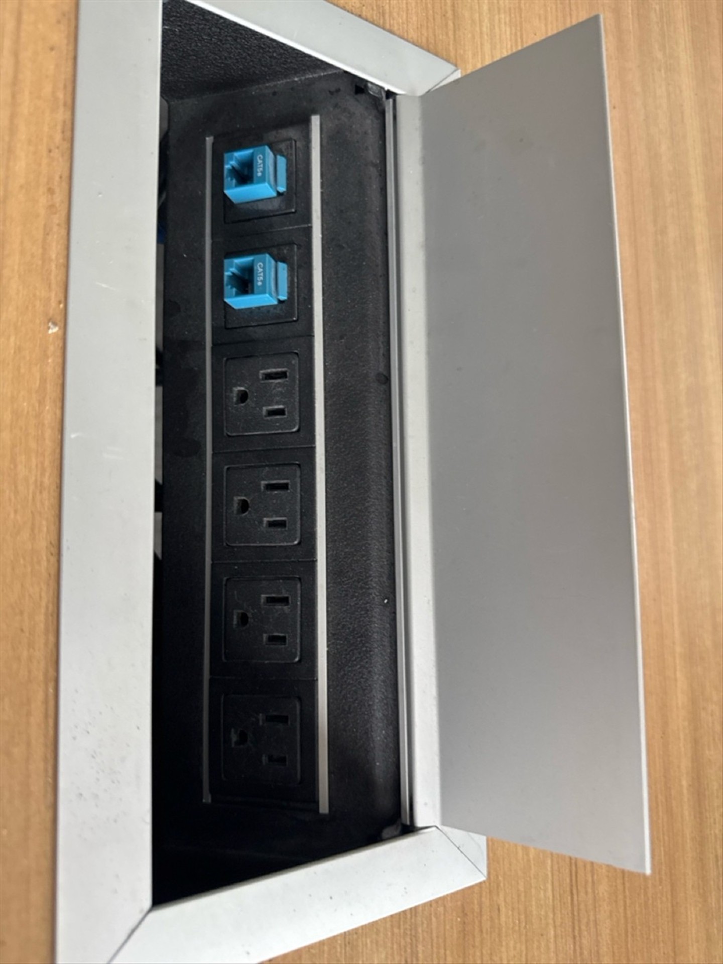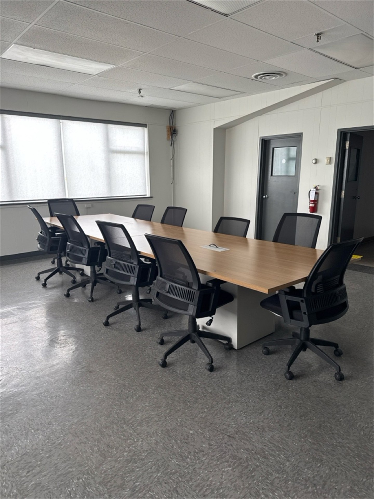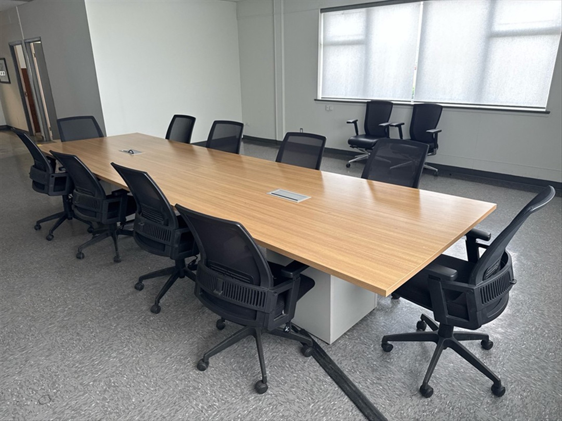 Board Room Table, 4 ft. X 18 ft. (2-Sec.) W/Integrated Elec. Outlets and Ethernet C/W (10) Chairs [Loc. Henry]