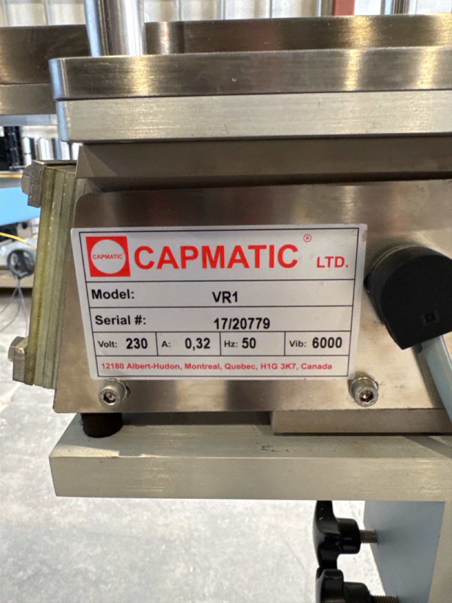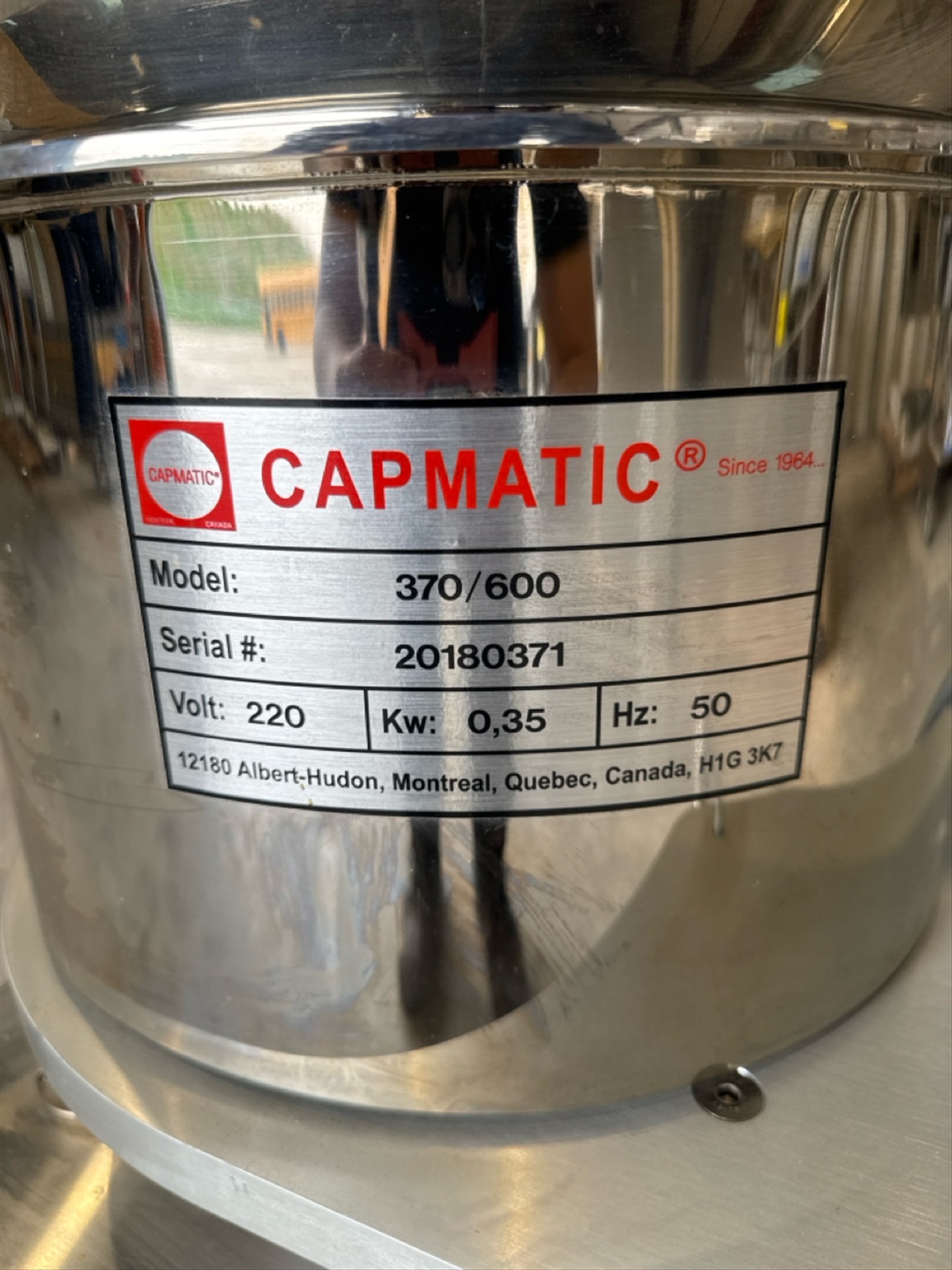 Capmatic vibratory feeder, mod. 370/600, ser. no. 20180371, stainless steel