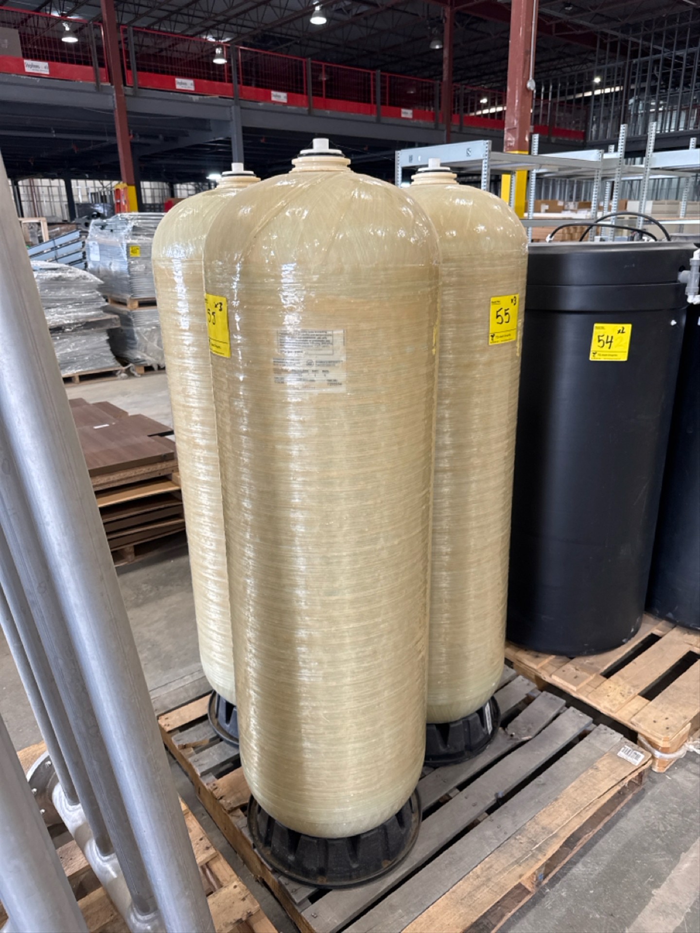 (3) Ecowater Systems Water conditioner carbon tanks, size 17X58