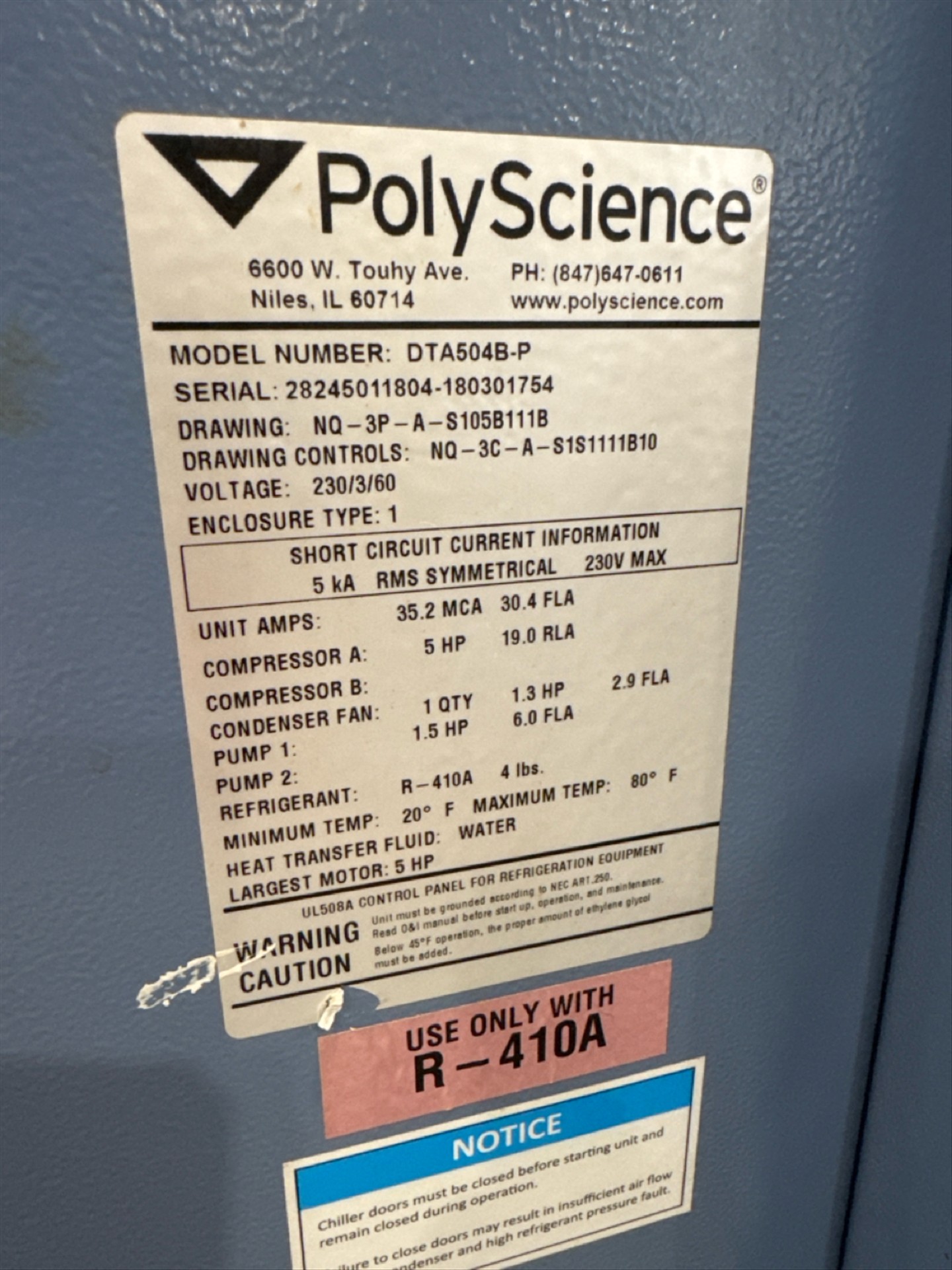 Poly Sci. DuraChill CO2 extractor, mod. DTA504B-P, 5 hp