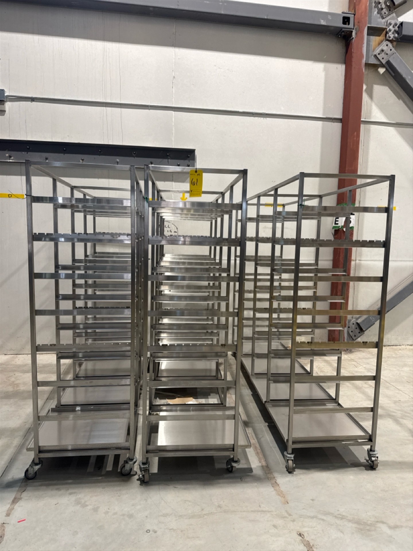 (3) 4 Section Rolling Tray Racks, stainless steel