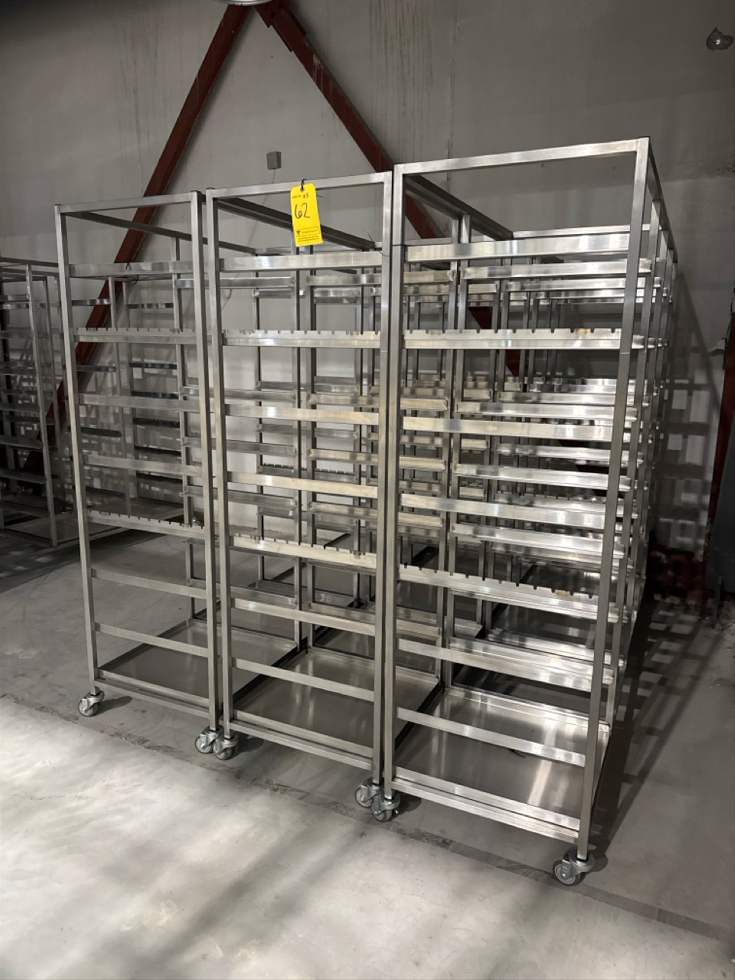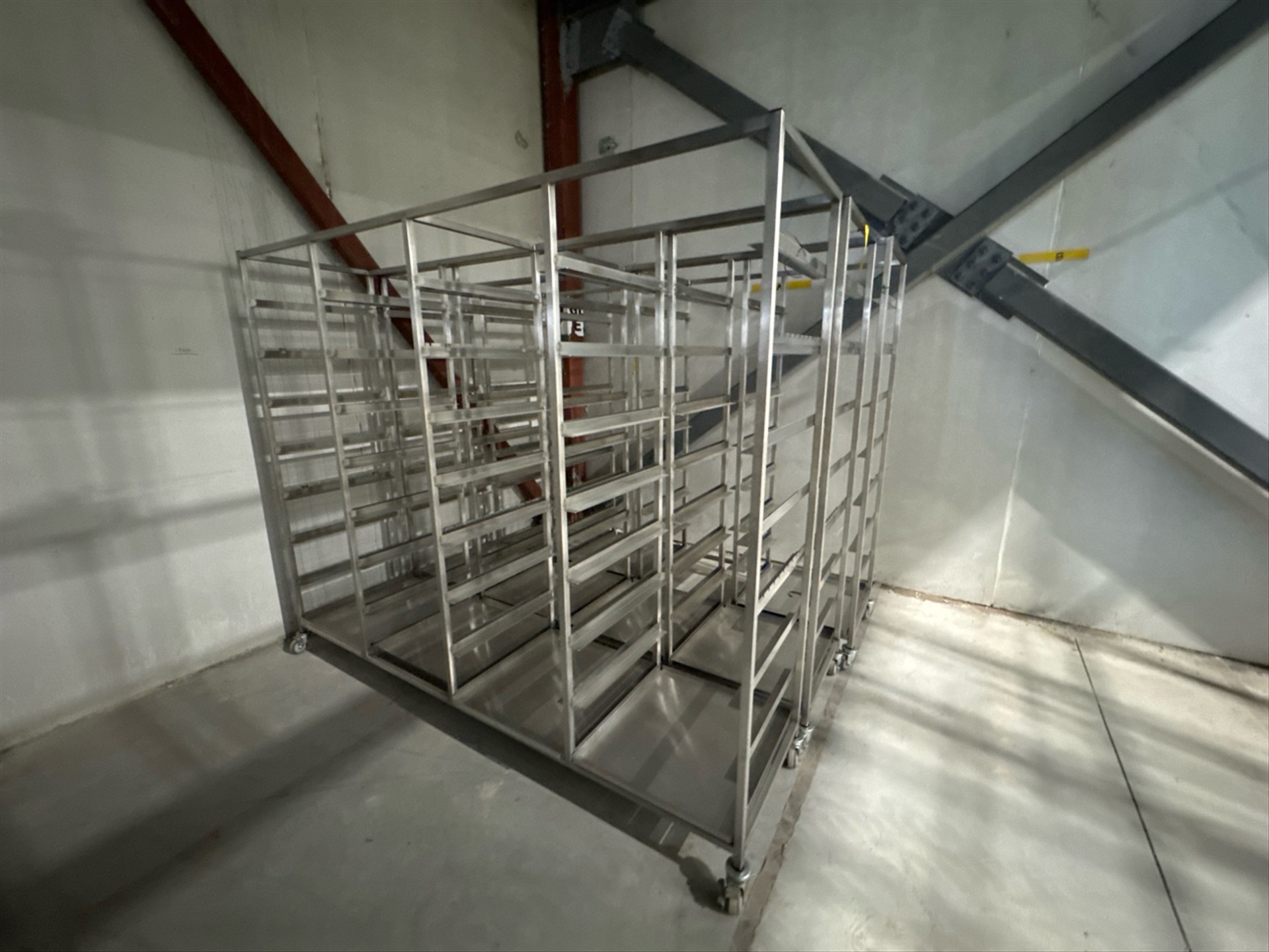 (3) 4 Section Rolling Tray Racks, stainless steel