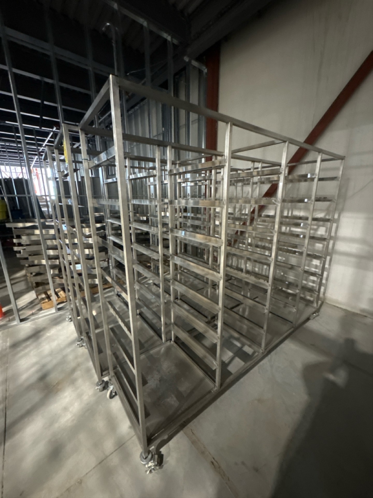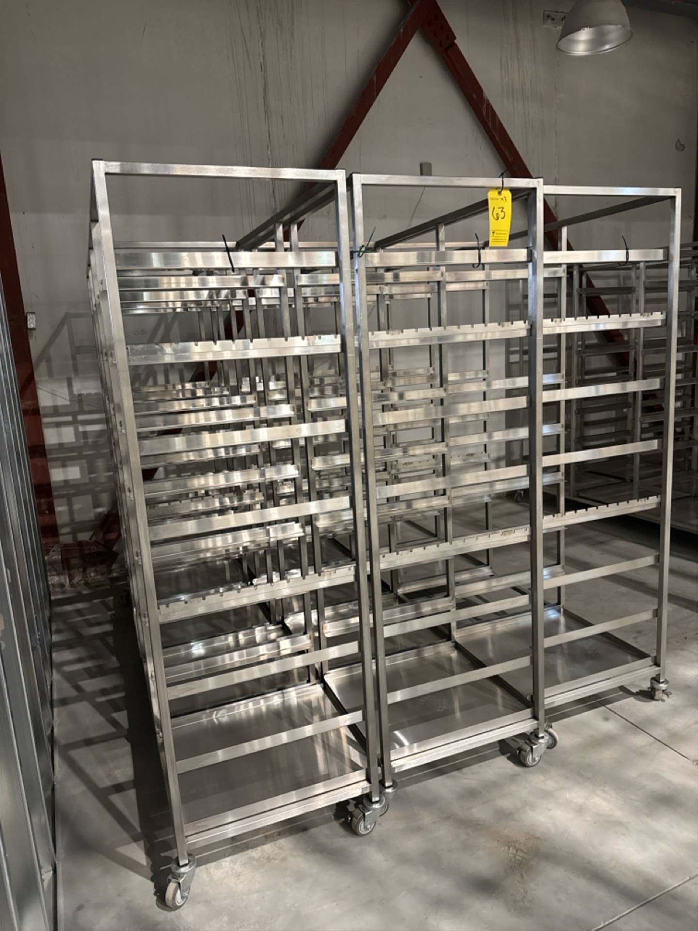 (3) 4 Section Rolling Tray Racks, stainless steel