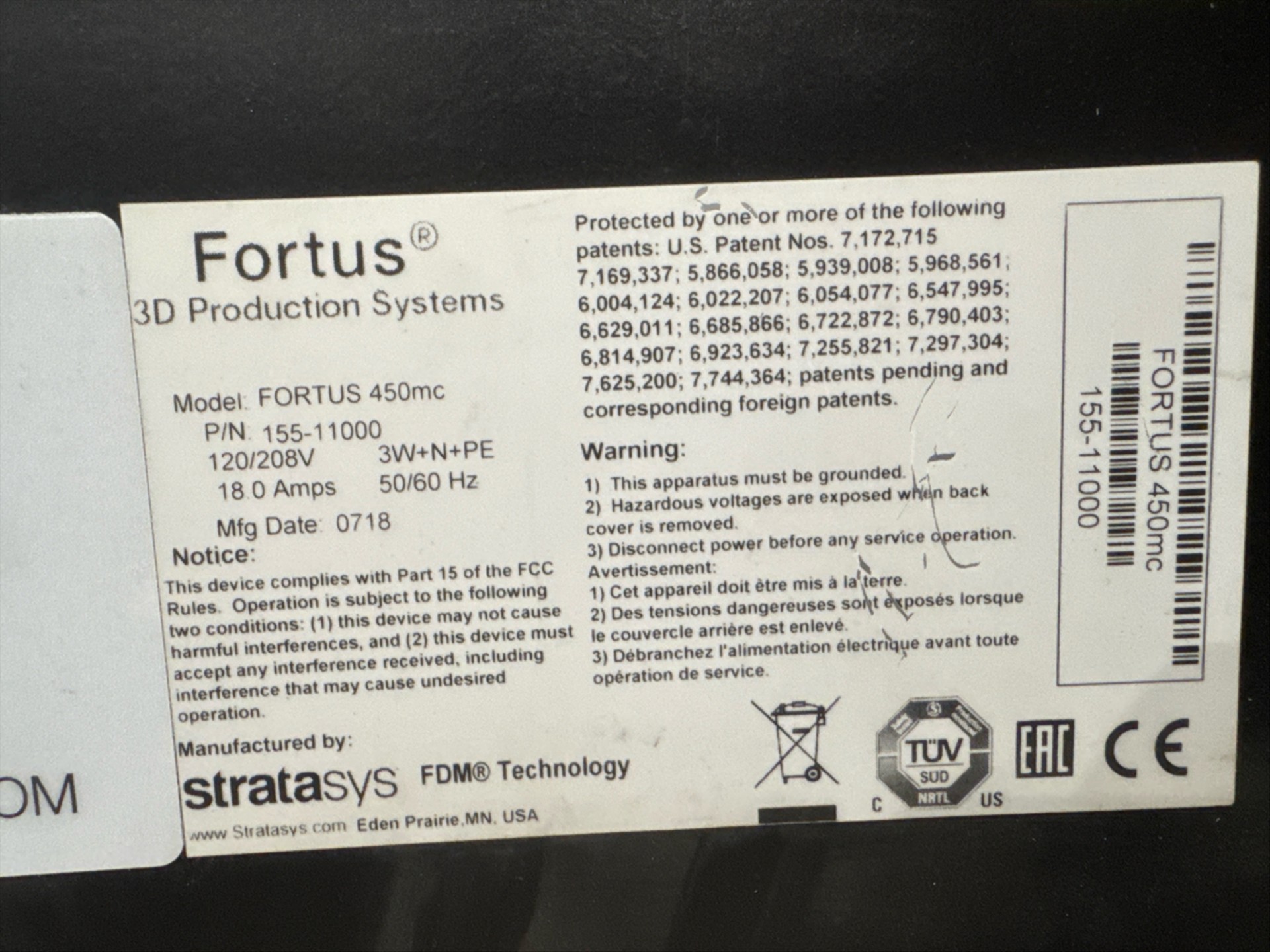 Strata 3D printer, mod. Fortus 450MC, ser. no. 155-11000 (2018)