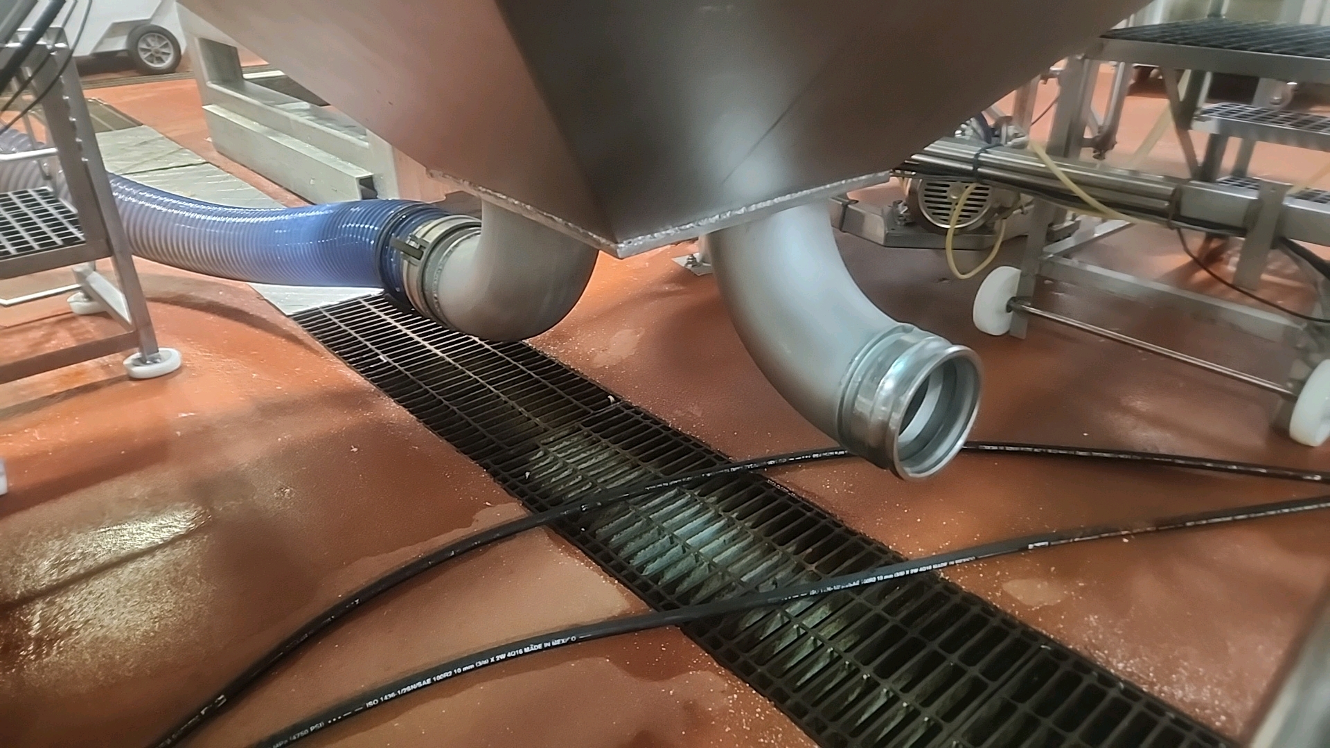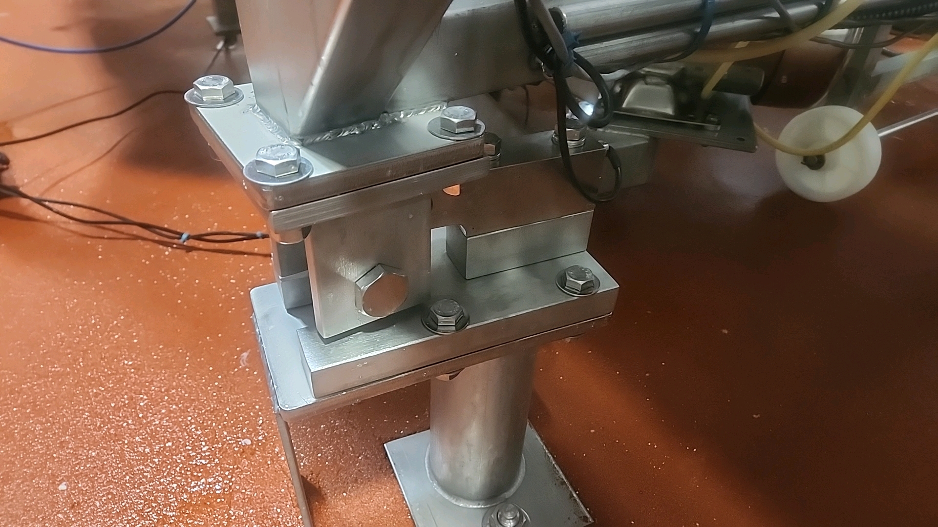 hopper, stainless steel, approx. 70 in. x 70 in. w/ (2) pneumatic tenderizers, on loadcells w/ Cardinal Storm 204 digital weight indicator [Loc. Massage]