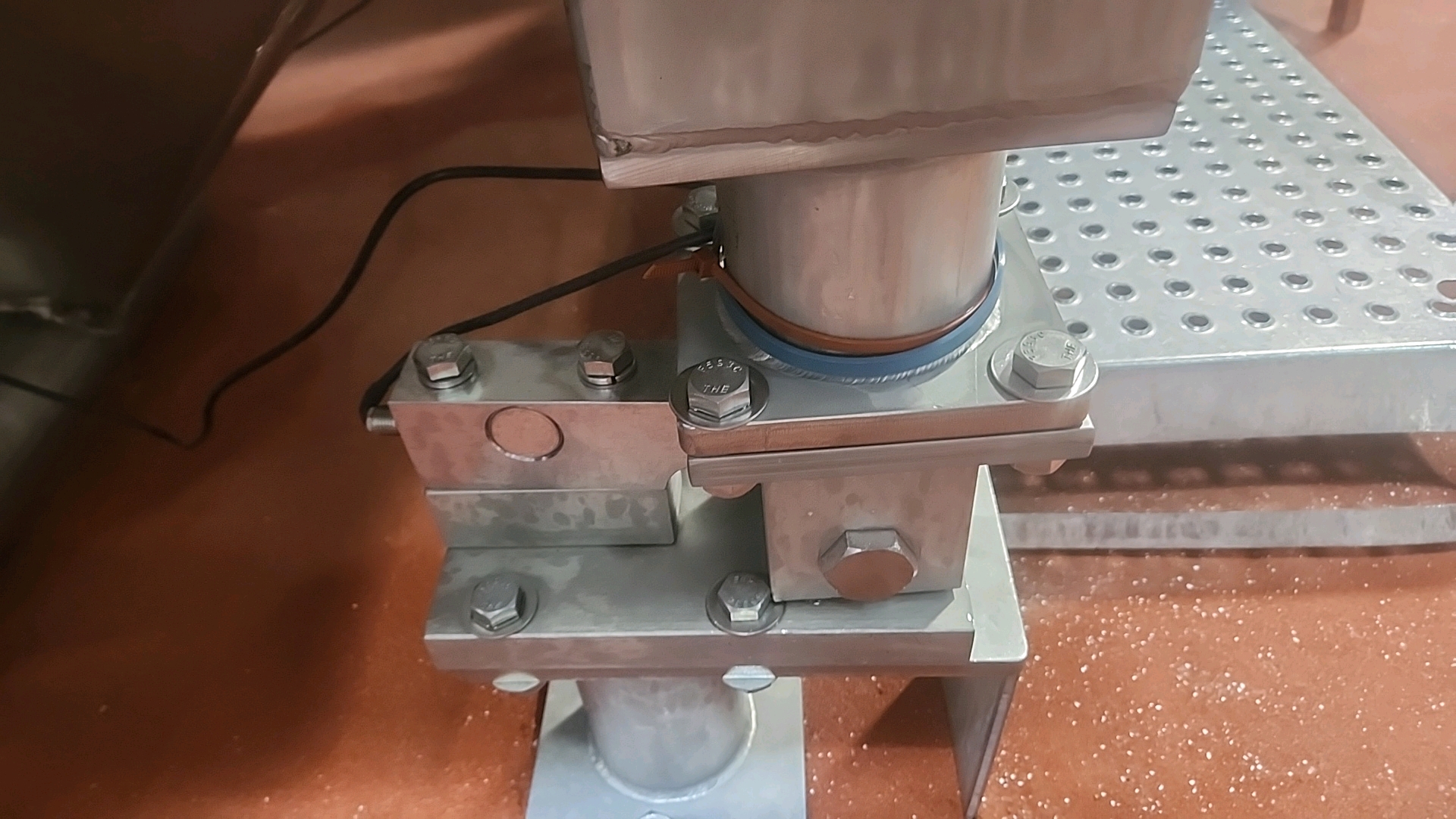 hopper, stainless steel, approx. 52 in. x 52 in., on loadcells w/ Cardinal Storm 204 digital weight indicator [Loc. Massage]