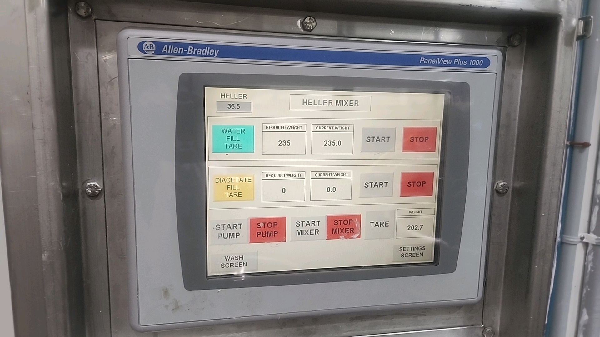 Heller tumbler, stainless steel, 2150 kg cap. c/w Allen Bradley Panel View Plus 1000 touch screen controller [Loc. Massage]