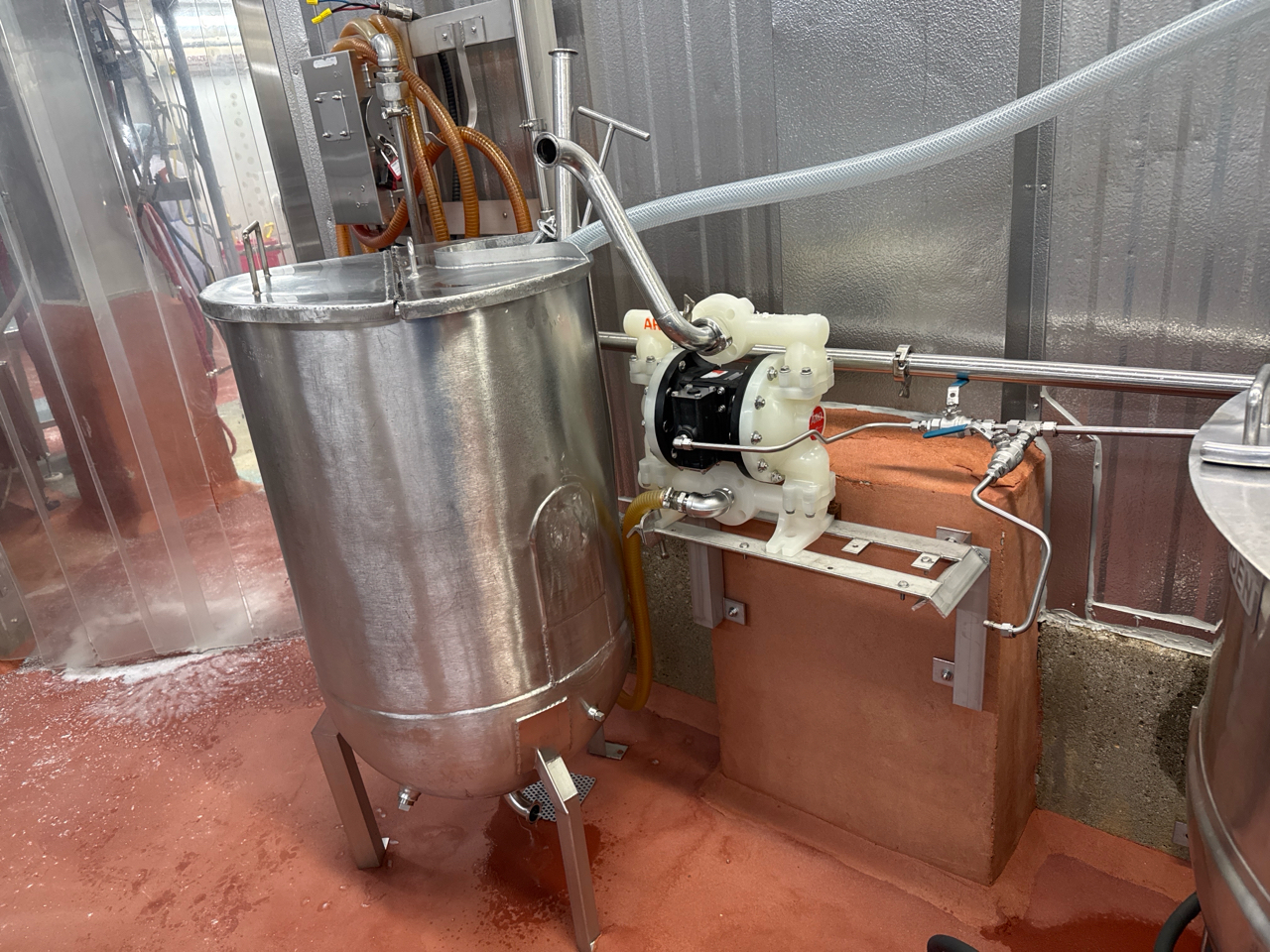 mix tank, stainless steel, approx. 26 in. dia. X 32 in. c/w ARO diaphragm pump [Loc. Line 3 RTE]