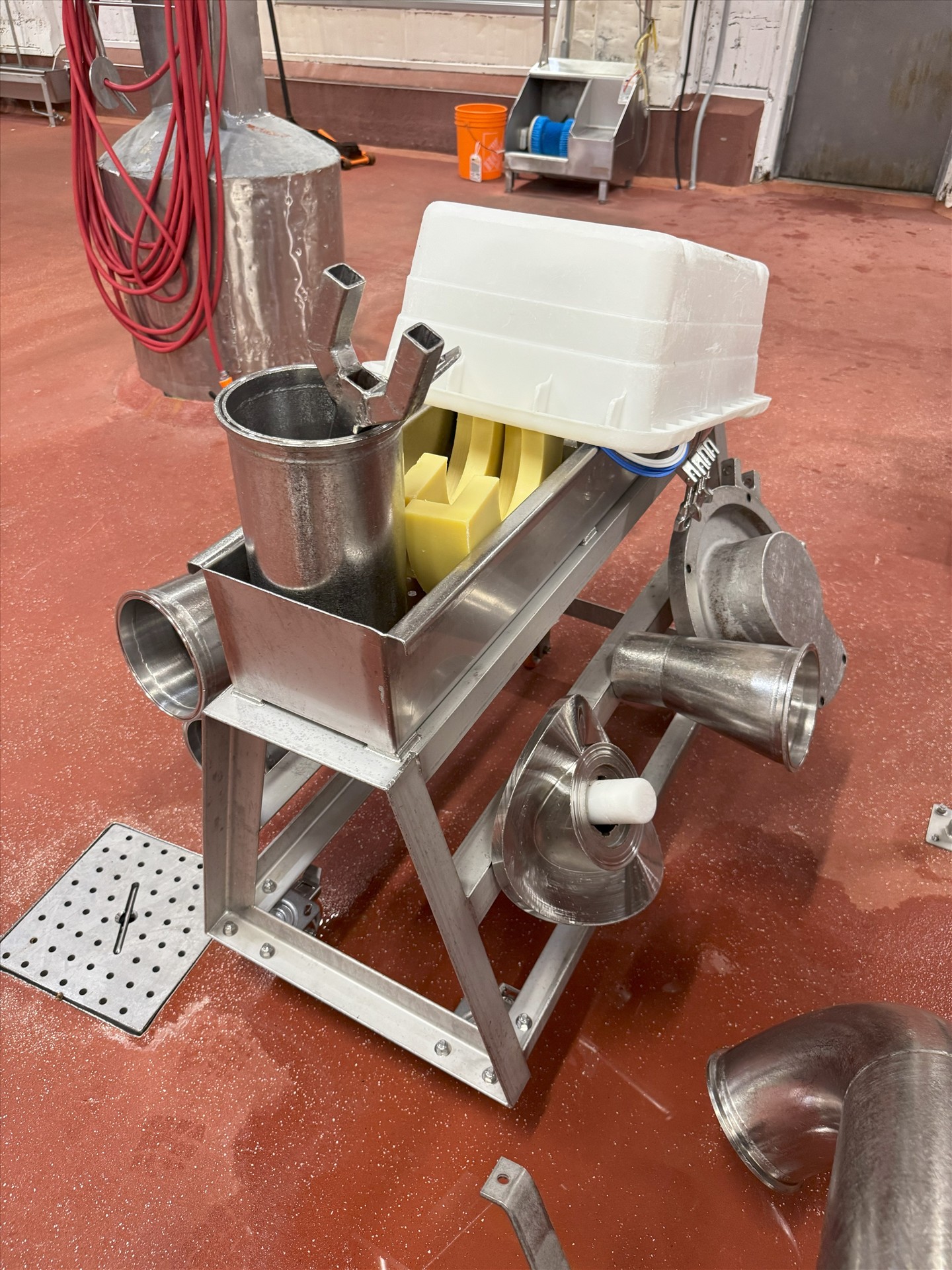 Watson Marlow sine pump, mod. MR160, ser. no. 159900911, stainless steel, 600 RPM, 5 hp washdown c/w stainless steel hopper, approx. 72 in. x 72 in. x 16 in. [Loc. Line 4 RAW]