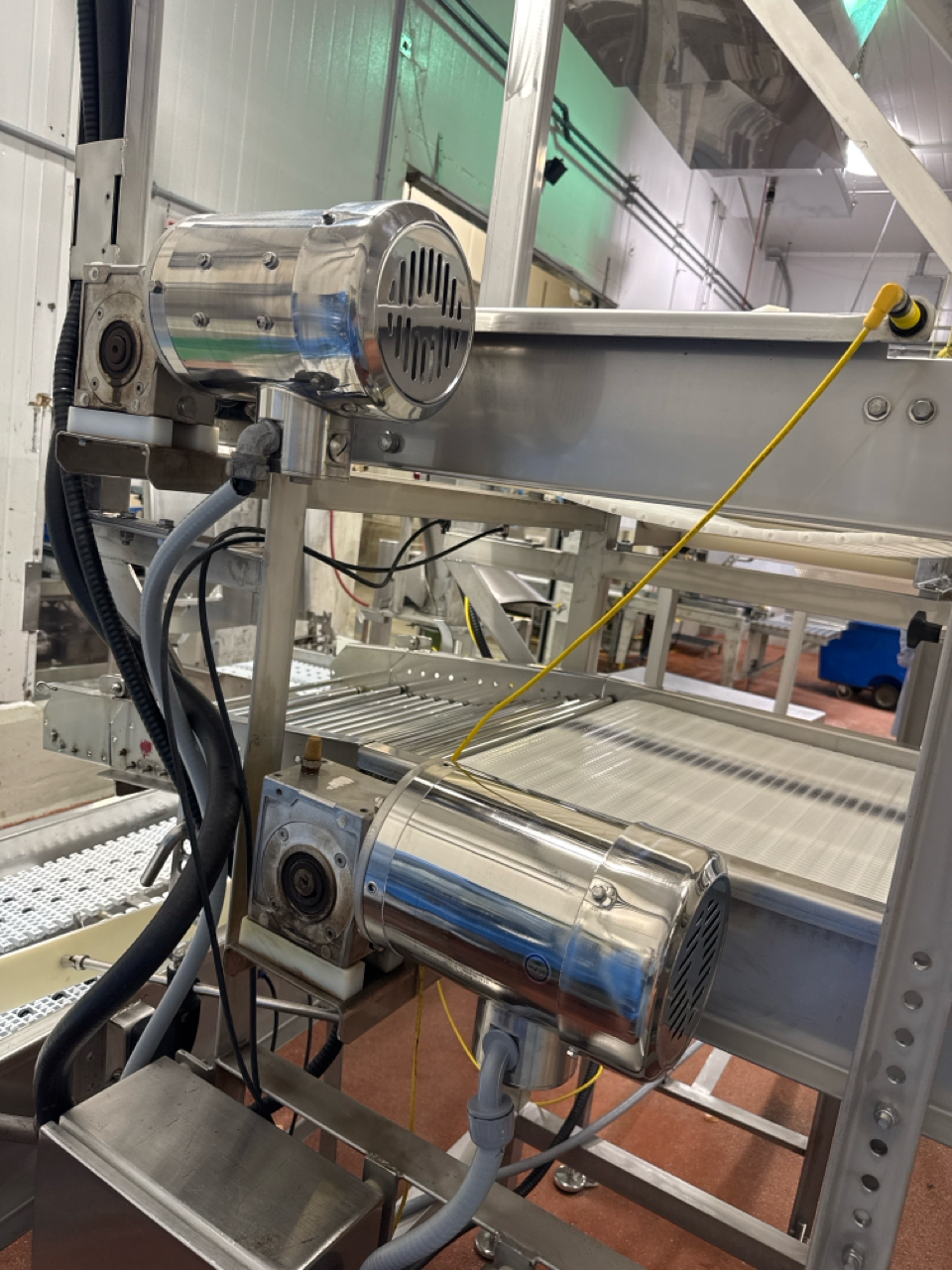 stacked dual belt conveyor, stainless steel, 1/2 hp (x2), approx. 24 in. x 5 ft. ea. [Loc. Line 4 RTE]