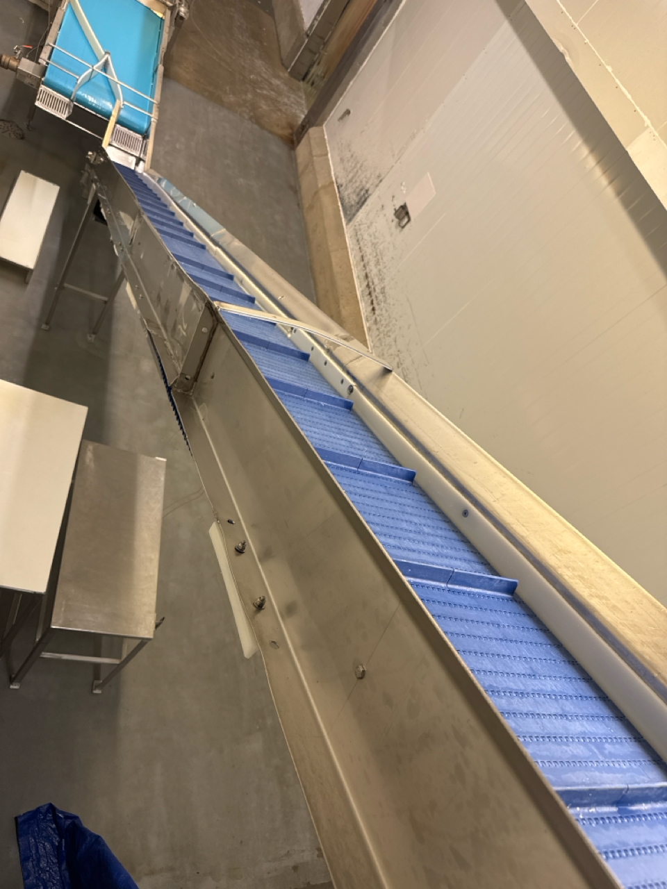 Hayseen inclined fluted-belt conveyor, approx. 12 in. x 28 ft., stainless steel, hydraulic [Loc. Line 5]