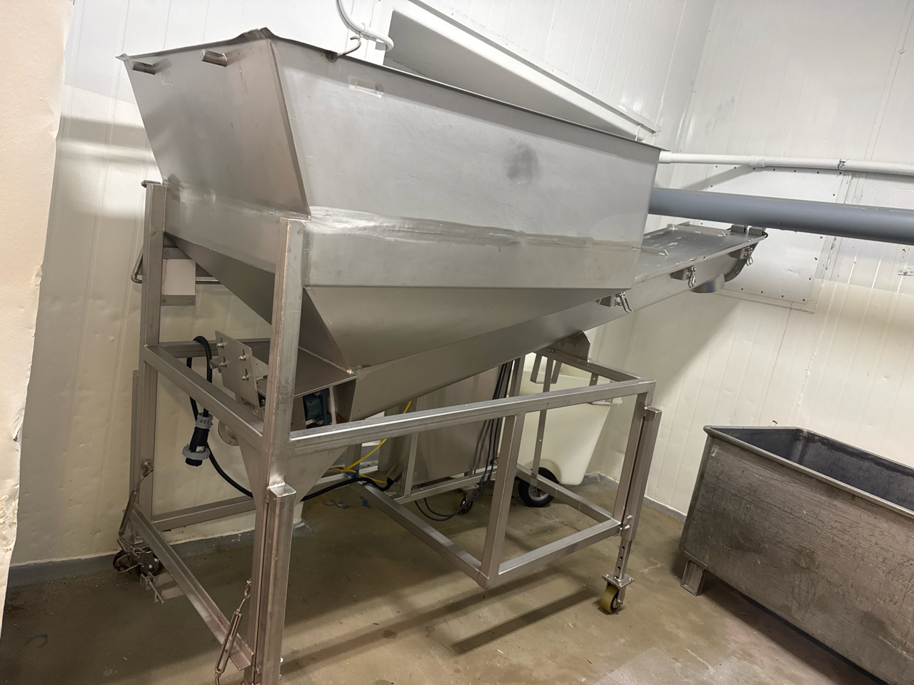 inclined screw conveyor, 9 in. dia. X 9 ft., stainless steel, hopper, mobile (no motor) [Loc. Production Area]