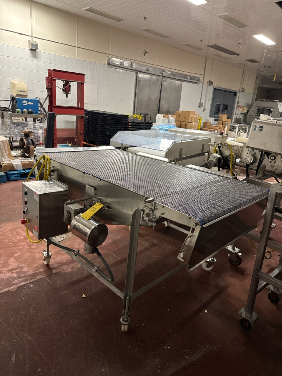 Hager EMB enrober conveyor, ser. no. 7582-01 (2019), approx. 40 in. x 72 in. stainless steel, washdown, VSD, mobile [Loc. Storage Rm.]