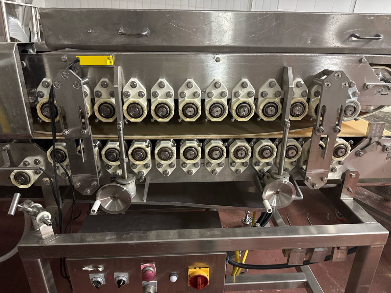 breast flattening belt conveyor, stainless steel, approx. 24 in x 108 in. w/ 5 ft. top conveyor, hydraulic (no hydraulic pack), mobile [Loc. Storage Rm.]