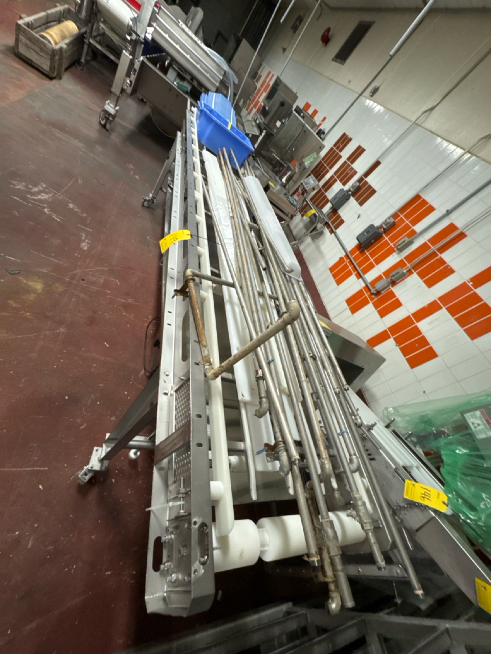 belt conveyor (no belting), stainless steel, power, approx. 24 in. x 15 ft., mobile [Loc. Storage Rm.]