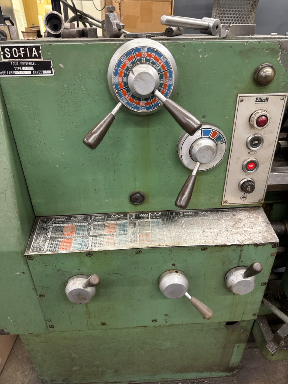 Elliott gap-bed lathe, mod. 111400, ser. no. 1Y400M15006478, 10 in. chuck, 10 in. swing, 60 in. center, tool holder, DRO, etc. [Loc. Maintenance]