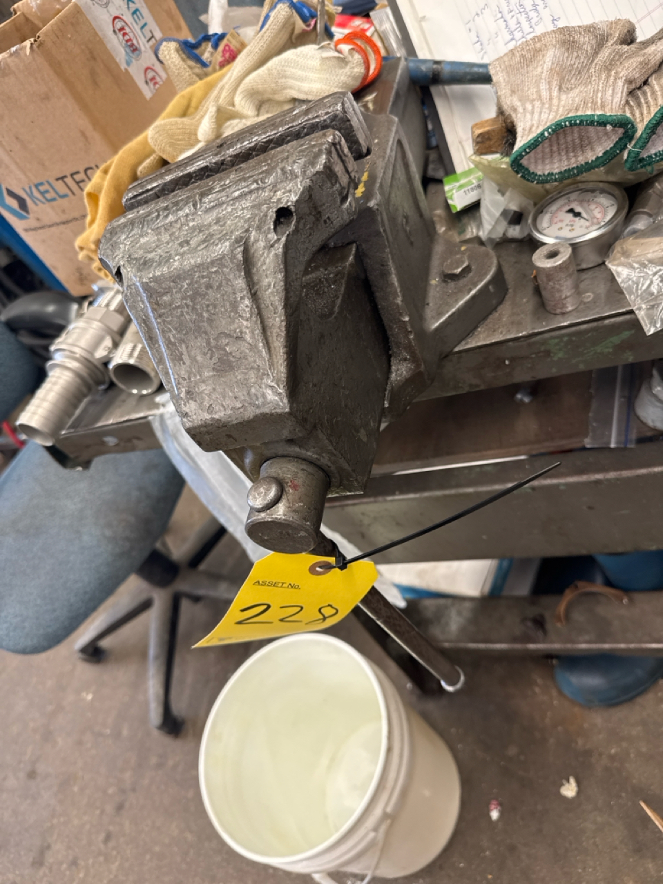 work bench, approx. 30 in. x 72 in. c/w 6 in. bench vice (excluding contents) [Loc. Maintenance]