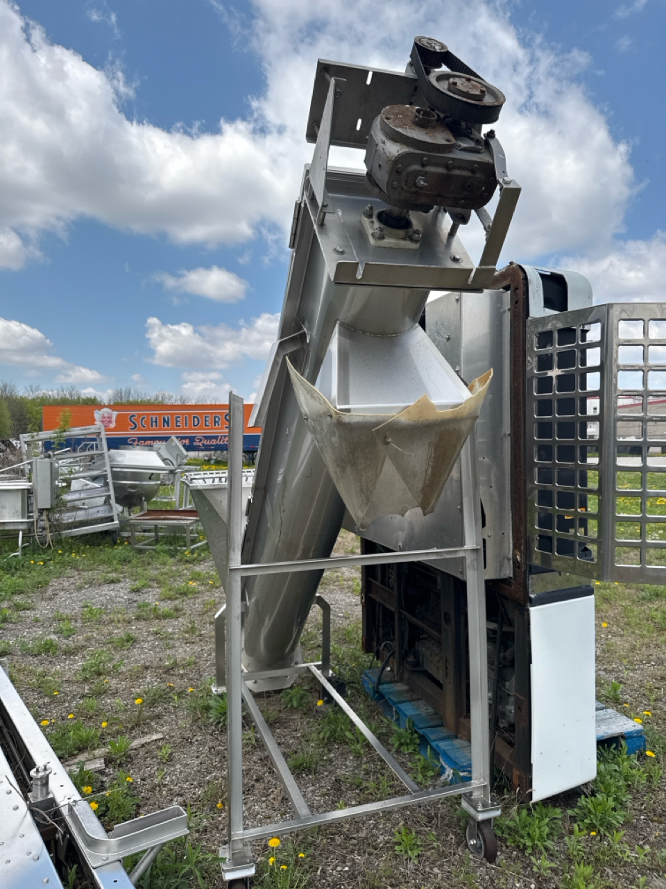 inclined screw conveyor, stainless steel, approx. 12 in. dia. x 112 in. x 64 in. high (for parts/repair) [Loc. Bones Yard]