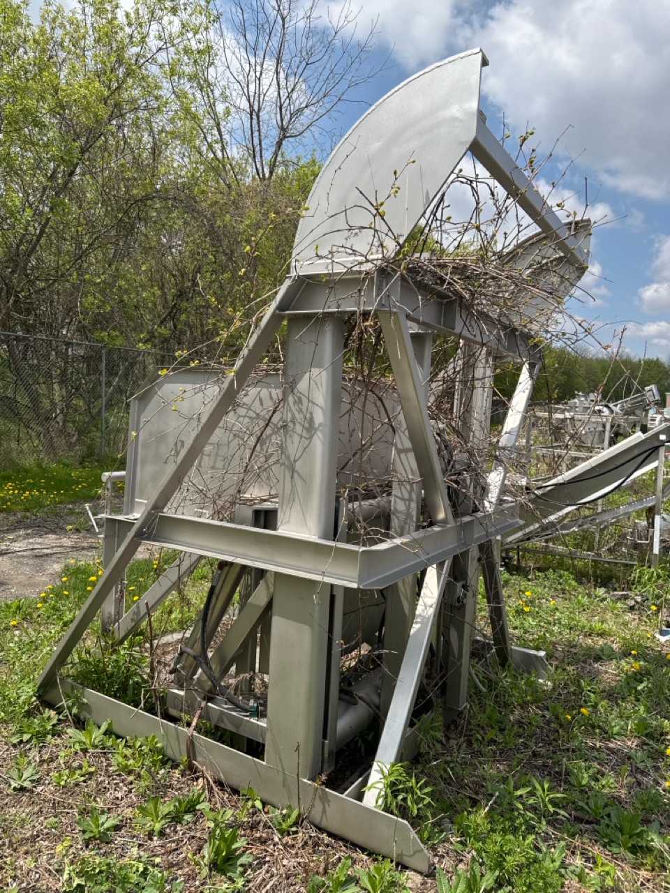 AMFEC industrial lift and pivot dumper, mod. 15C ser. no. 111304, stainless steel, approx. 48 in. x 48 in. x 92 in. lift height, hydraulic (for parts/repair) [Loc. Bones Yard]