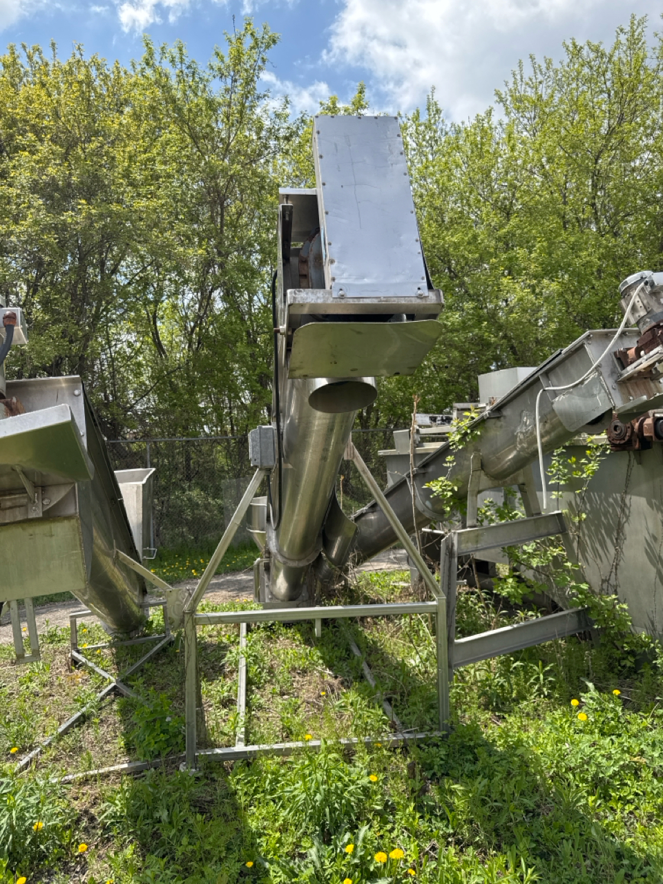 inclined screw conveyor, stainless steel, approx. 12 in. dia. x 15 ft., 2 hp washdown, mobile (for parts/repair) [Loc. Bones Yard]