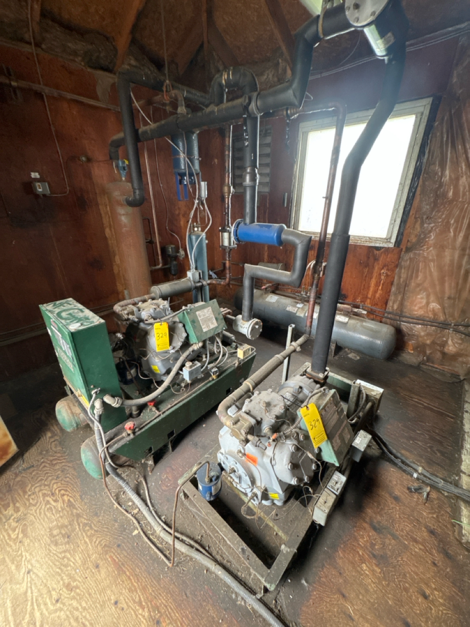 KeepRite freon compressor, mod. CCU25AHR w/ (2) Carlyle 06ET275-160 semi-hermetic compressors and Chill-Con reservoir [Loc. Power House]