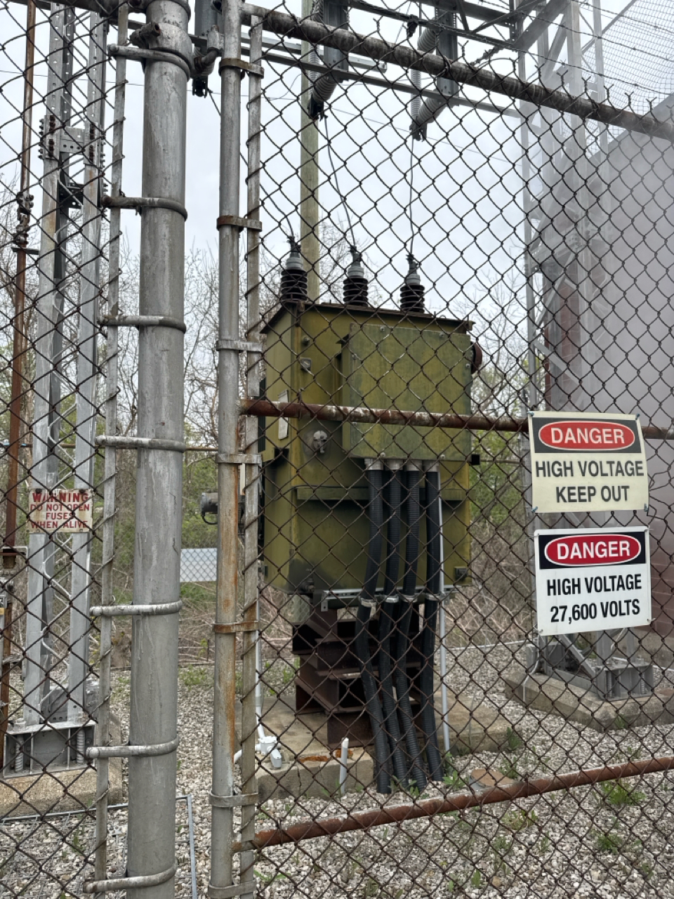 Markhan transformer, 750/1000 kva (delayed removal to be timed w/ demolition) [Loc. Power House]