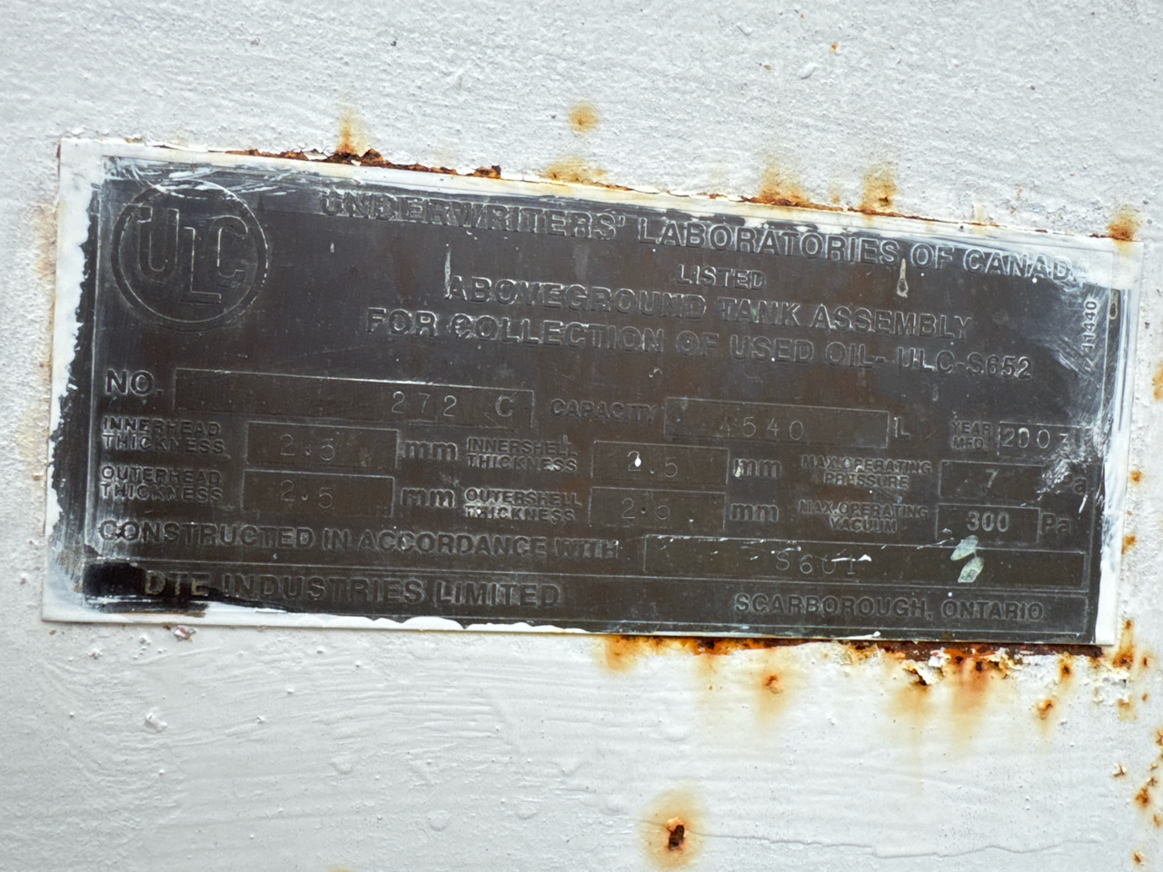 Waste oil tank, mod. 272C, 4540 L cap. [Loc. Power House]
