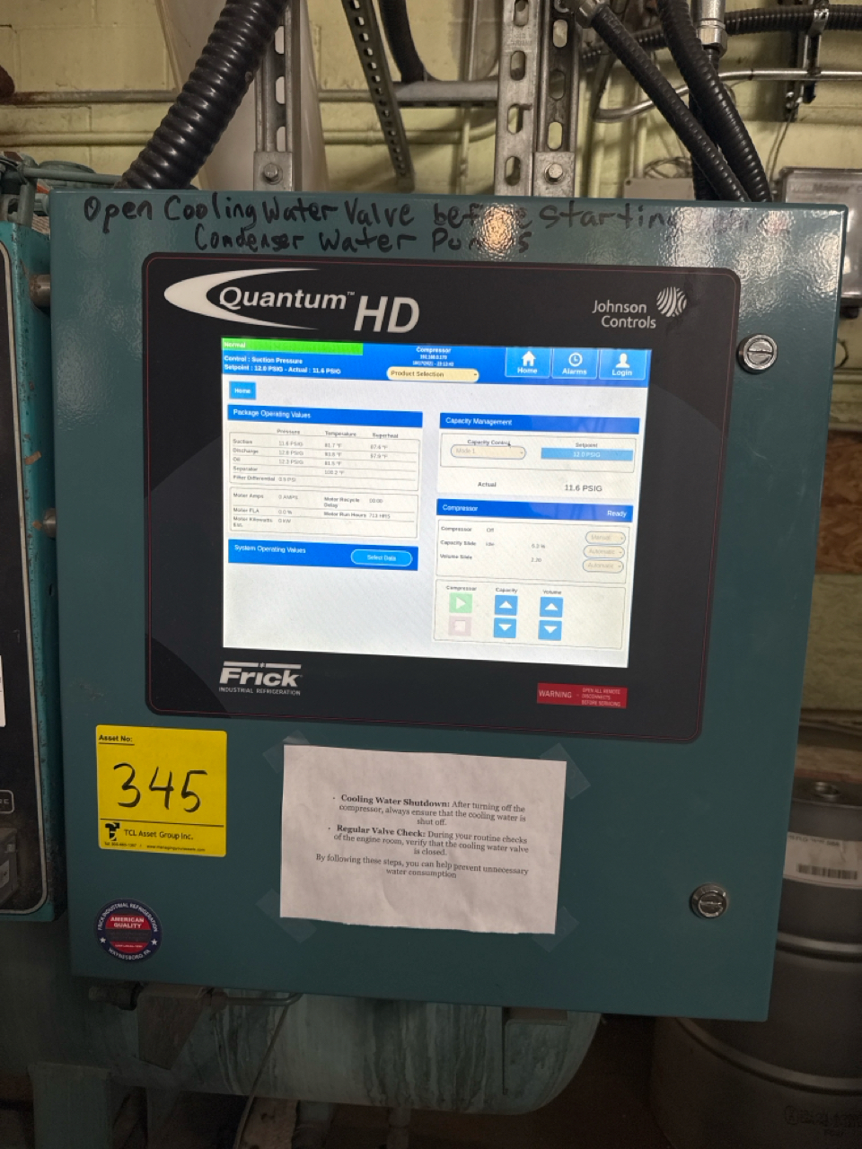 Frick ammonia compressor, mod. RXF85H, ser. no. X0197UFMNWHAA03, 250 hp w/ QuantumHD controls [Loc. Compressor Rm.]