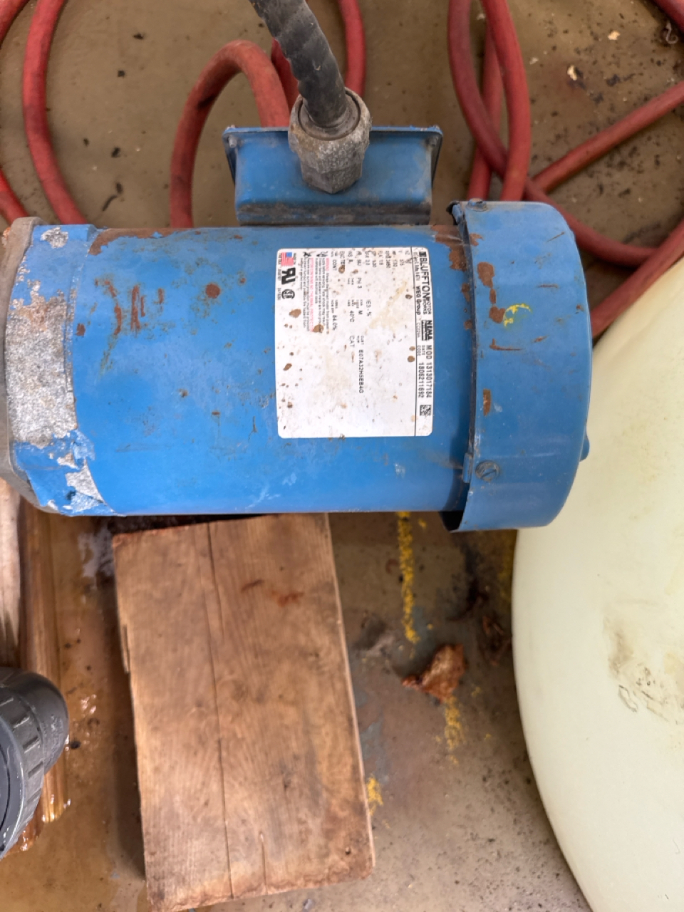 vertical poly tank, 850 gal. cap. c/w 1.5 hp pump [Loc. Boiler Rm.]