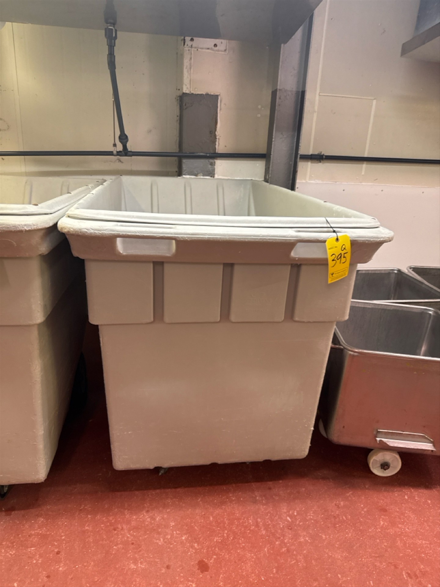 Poly tilter dumpster, 76 inch length x 39 inch width x 43 inch depth[Loc.Massage Room]