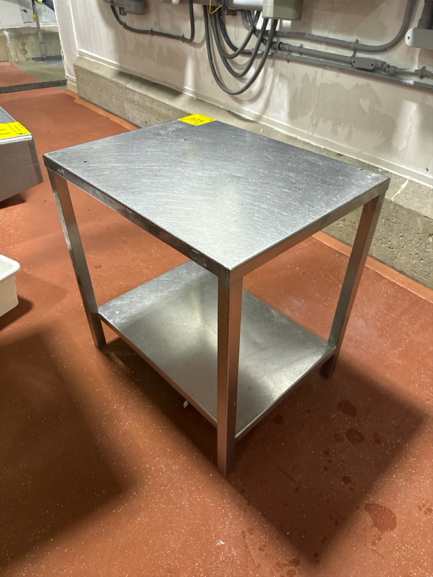 Stainless steel table, 31 inch length x 24 inch width x 32 inch height, [Loc.Massage room]