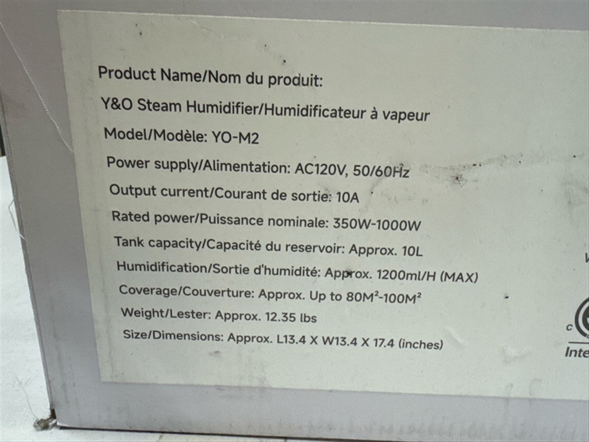 Y and O Steam Humidifier Model YO-H2 [Loc. Henry]