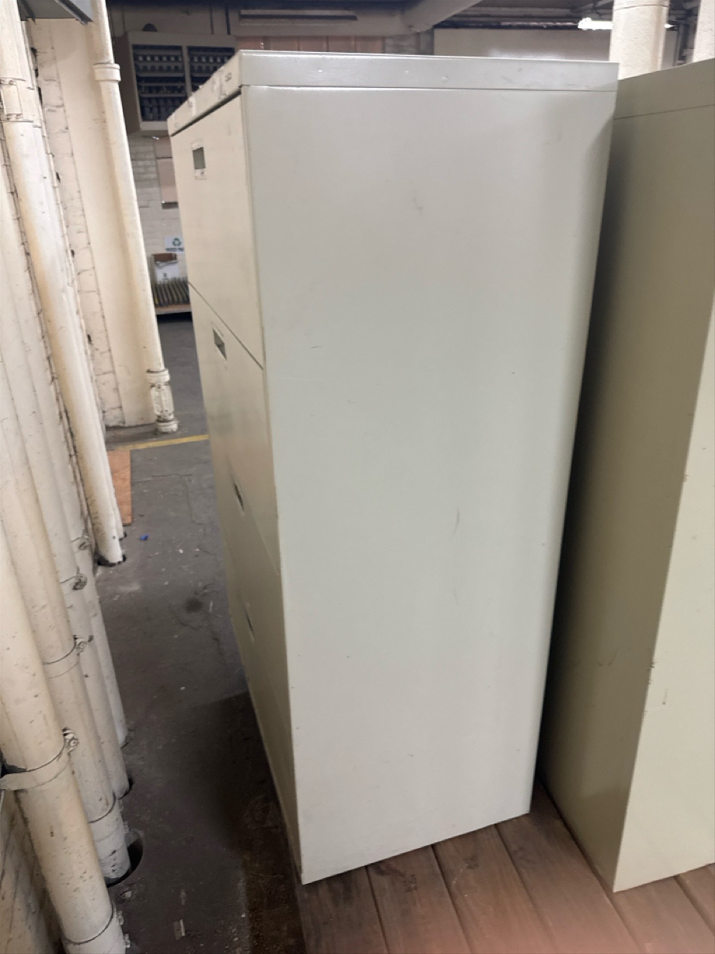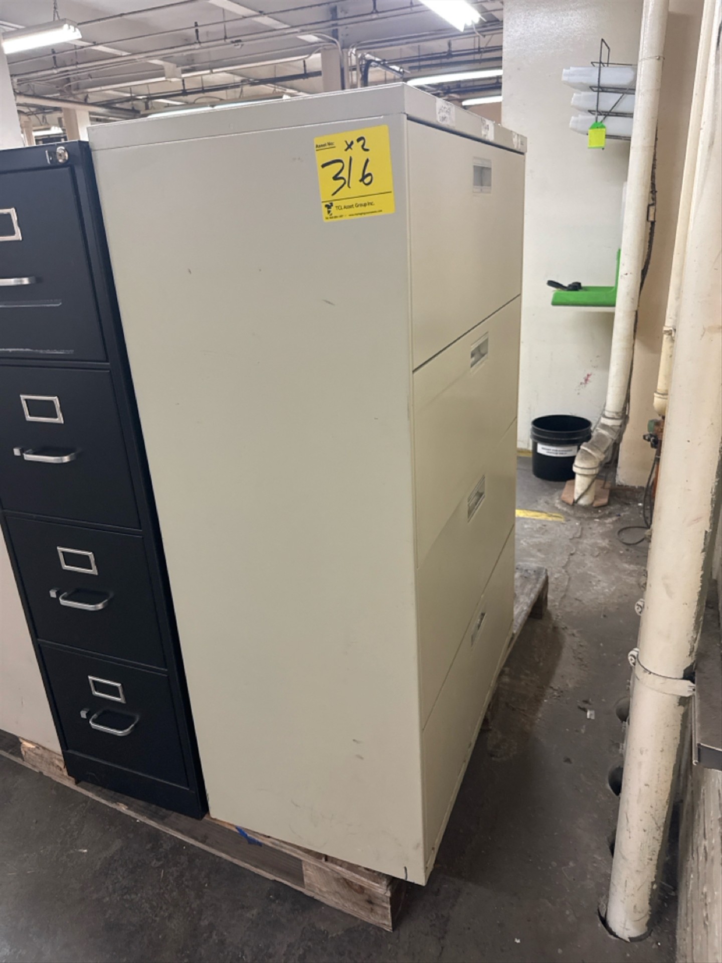 (1) black 4-drawer filing cabinet, (1) beige 4-drawer filing cabinet [Loc. Greenwich]