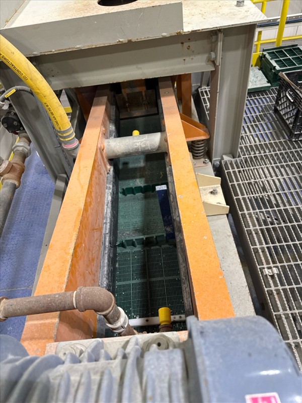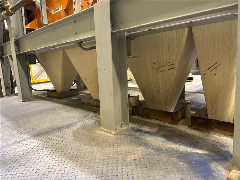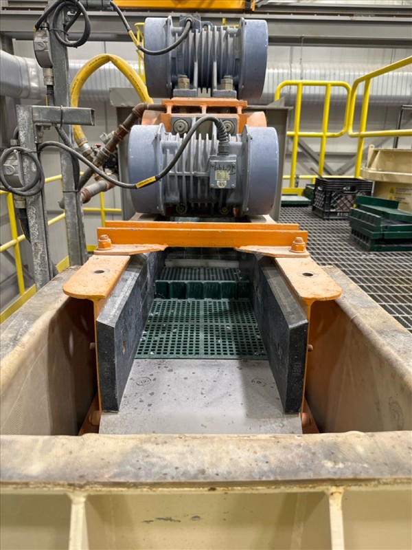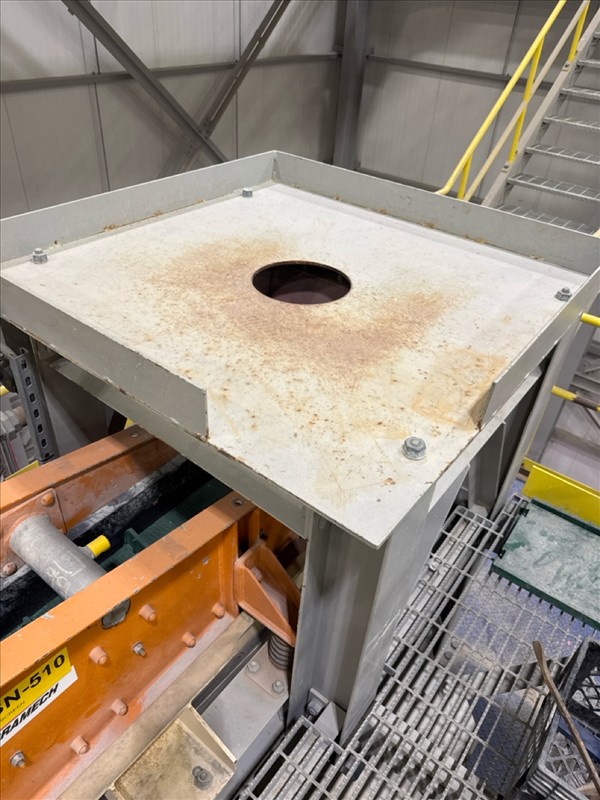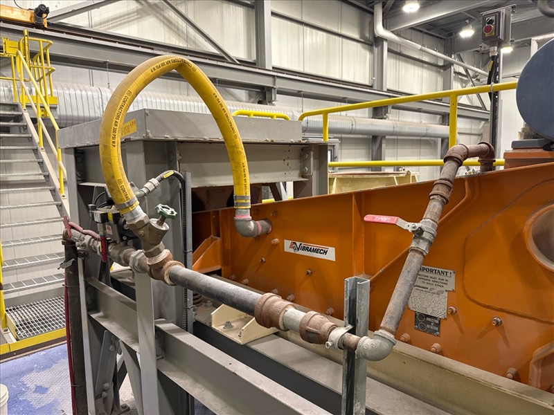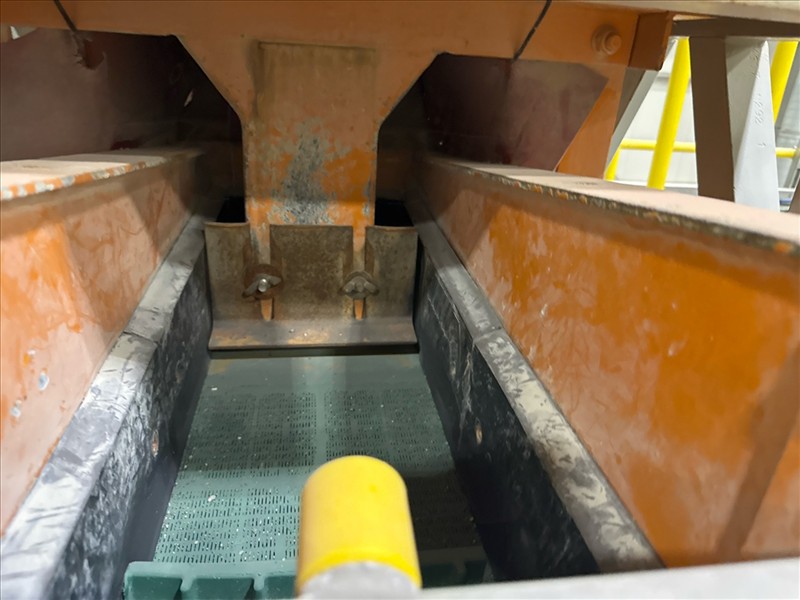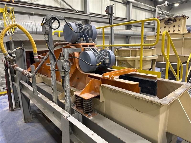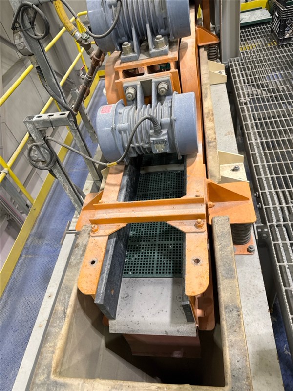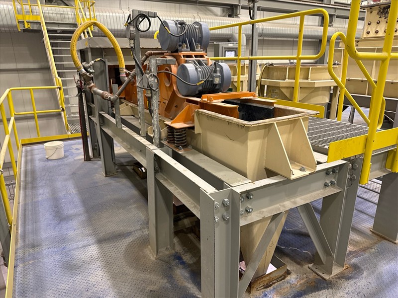 VibraMech vibratory sizing screen, 'Fines Non-Mag De-Watering', mod. H1-24-03, ser. no. J6799 (2018), approx. 10 in. x 126 in., (x2) 1/10 hp c/w 6 mm rubber lined infeed chute and underpan c/w work platform