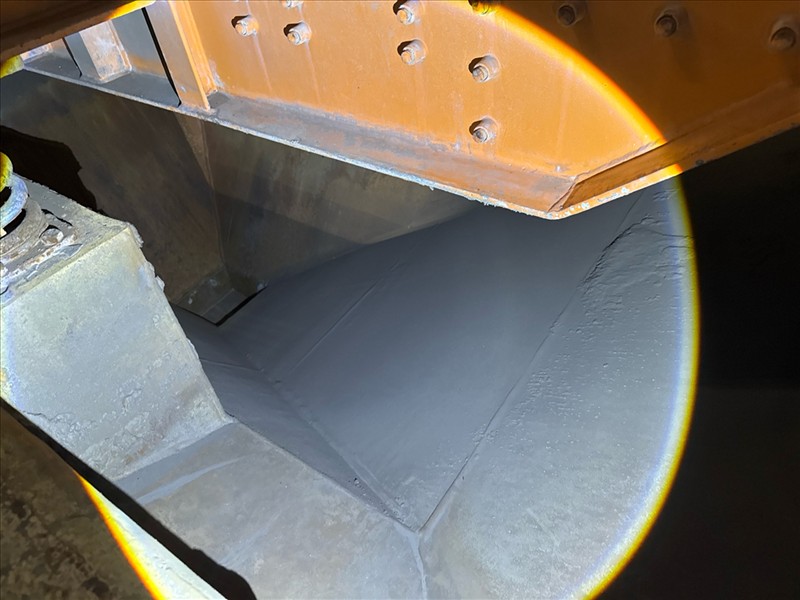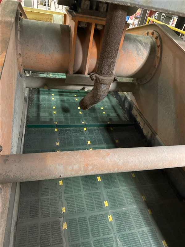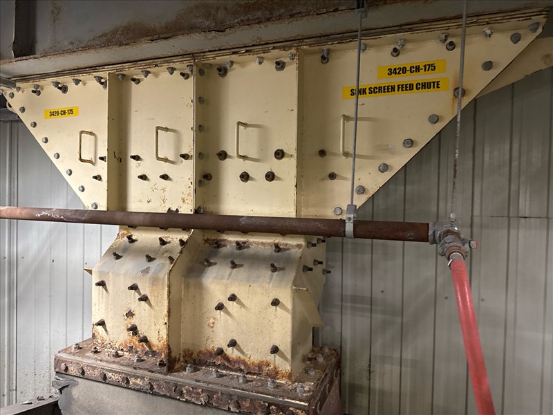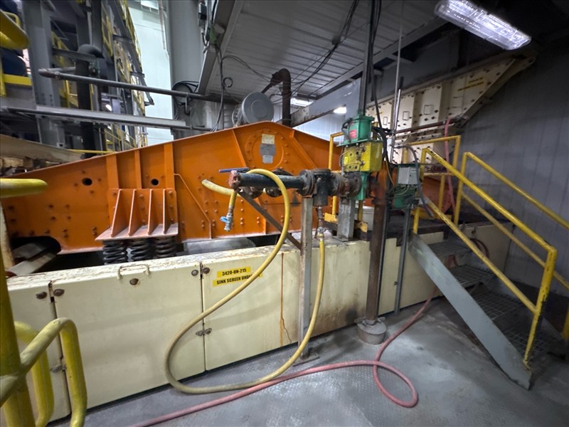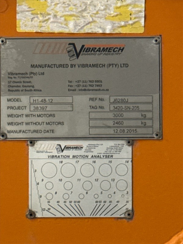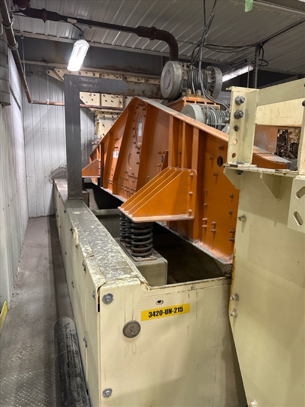VibraMech vibratory sizing screen 'DMS Conc Bin No. 2', mod. H1-48-12, ser. no. J6280J (2015), approx. 46 in. x 19 ft., (x2) 7.5 hp c/w rubber lined infeed chute, reject chute and underpan