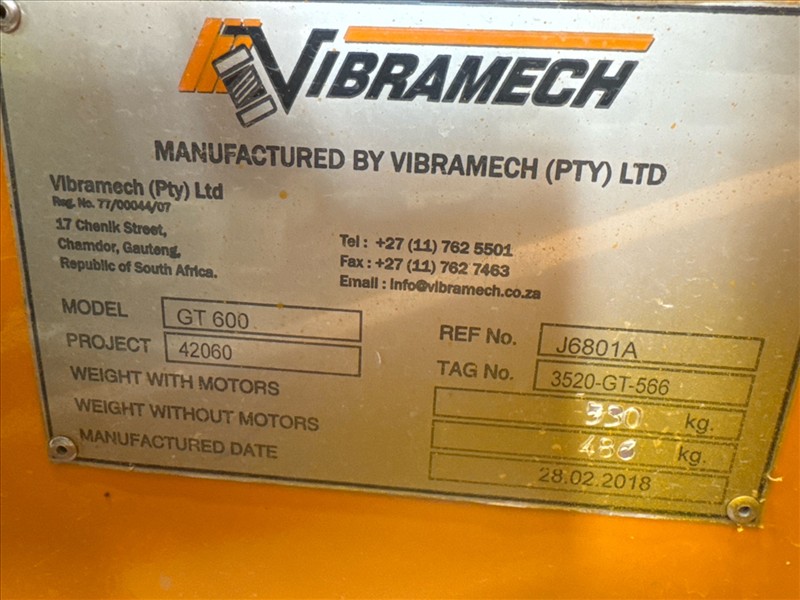 VibraMech grease table, mod. GT600, ser. no. J6801A (2018), approx. 23 in. c/w feeder and tailings bin