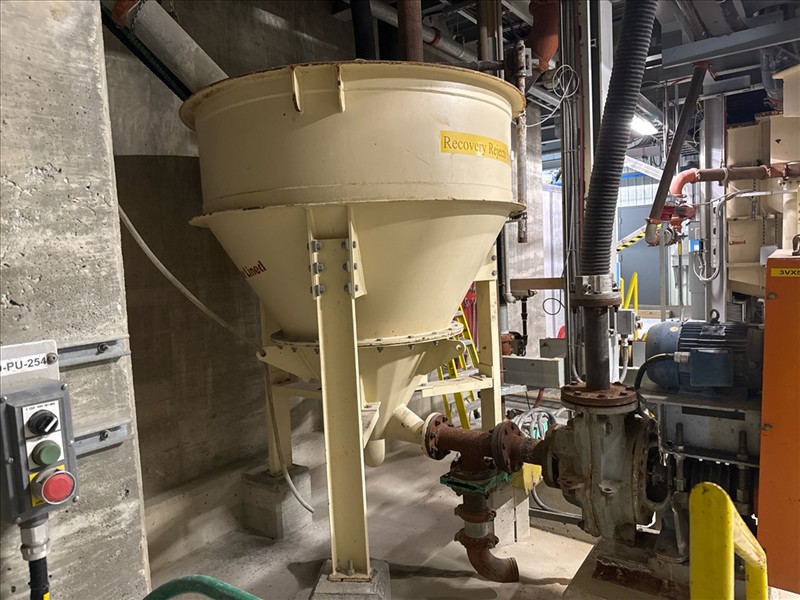 6 mm rubber lined 'Recovery Rejects Sump' hopper, approx. 6 ft. dia. X 5 ft. c/w Warman centrifugal pump, 7.5 hp