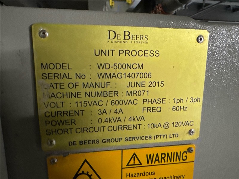 DeBeers 'Middle Screen' magnetic separator, mod. WD-500NCM, ser. no. WMAG1407006 (2015), 1.5 hp