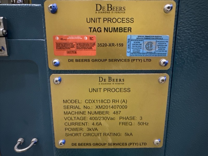 DeBeers 'Fines Recon No. 1' X-Ray separator, mod. CWX118CDRH (A), ser. no. XM201407009 w/ touch screen controls