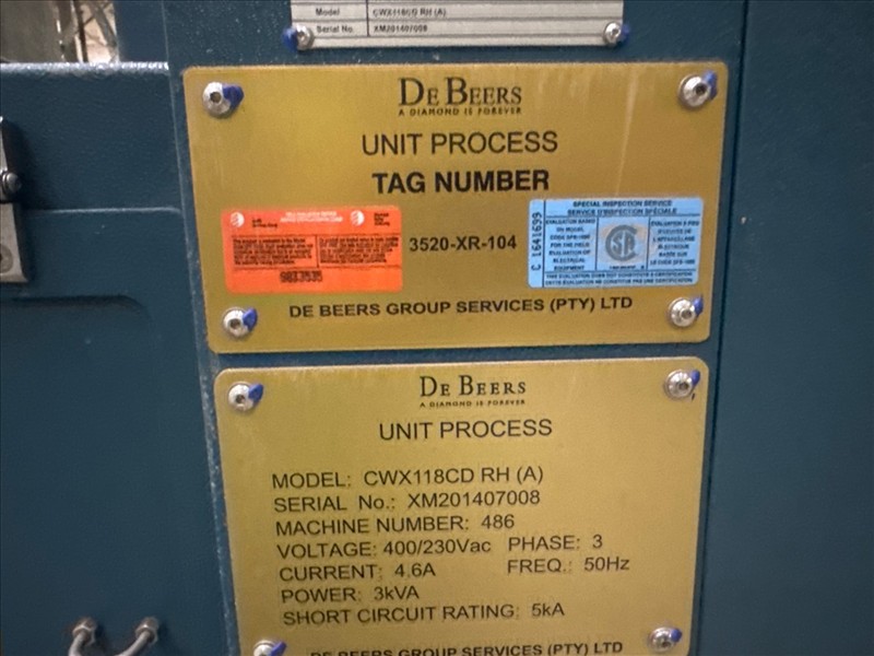 DeBeers 'Mids Secon' X-Ray separator, mod. CWX118CDRH (A), ser. no. XM201407008 w/ touch screen controls