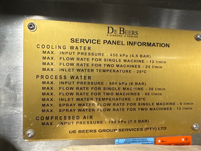 DeBeers pneumatic/water dual cooling panel for DeBeers X-Ray separators