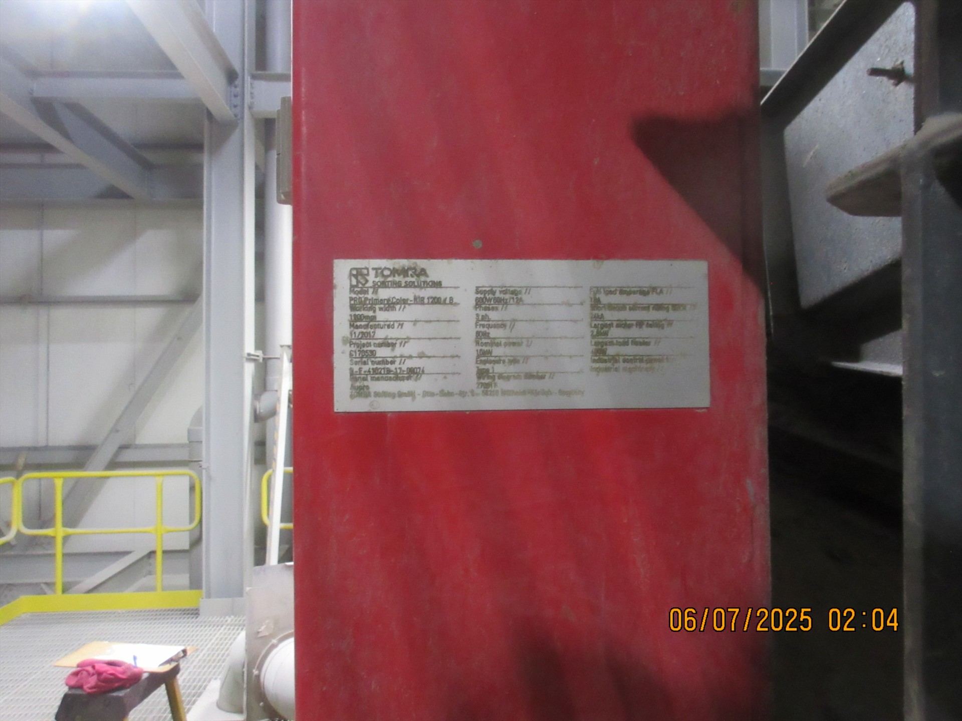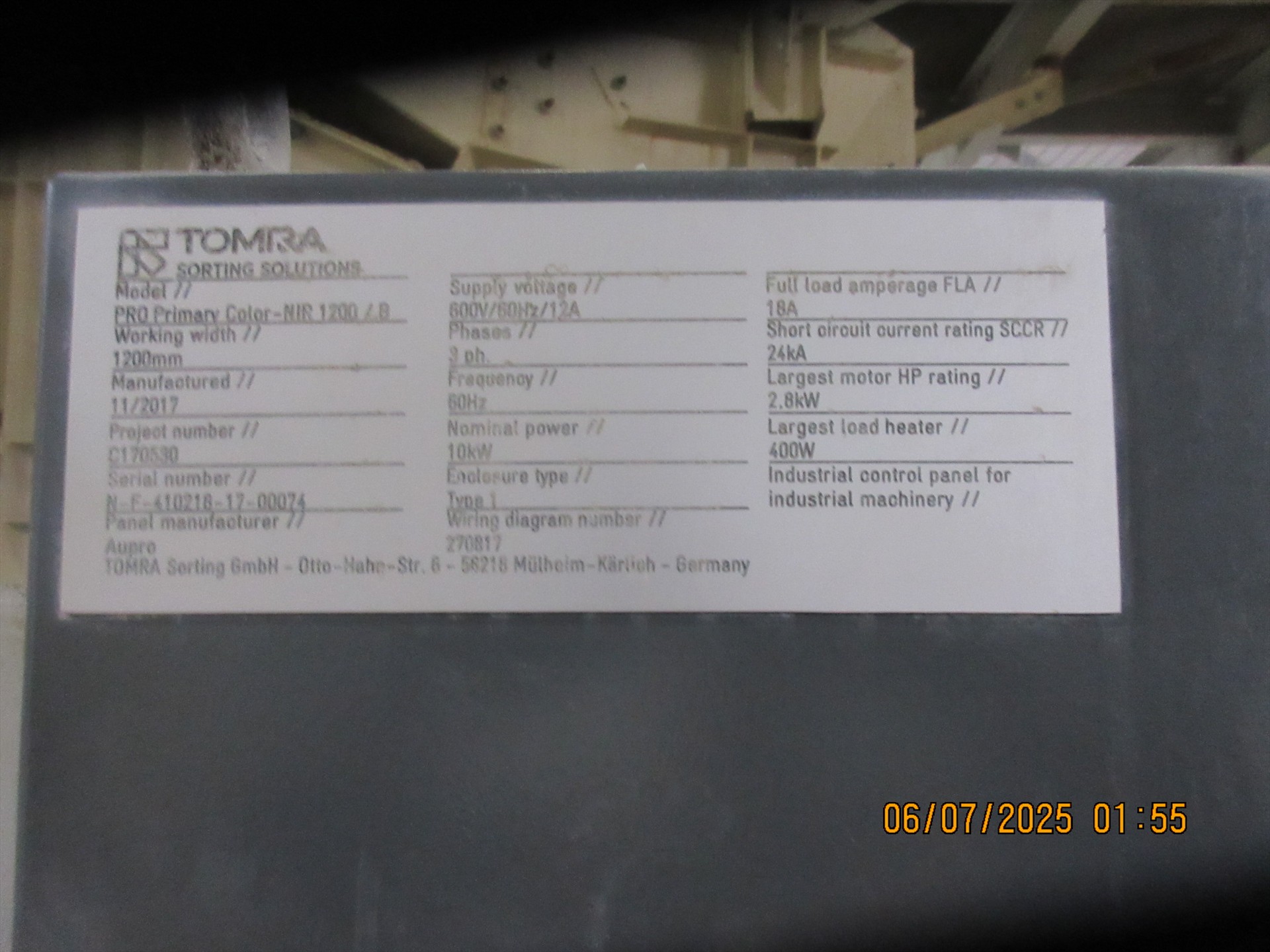 Tomra 'Primary Sorter' optical sorter, mod. PRO Primary Color-NIR 1200/B, ser. no. N-F410218-17-00074 (2017), 1200 mm working width, 50 mm - 250 mm particle size c/w infeed conveyor and control panel