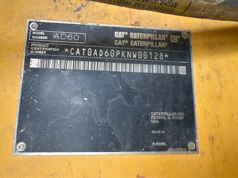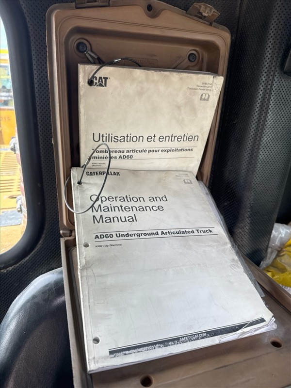 Caterpillar (CAT) underground articulated haul truck, mod. AD60, ser. no. CAT0AD60PKNW00128 (2016), 60-ton cap., CAT Acert eng., approx. 27813 hrs. (requires repair - solenoid/final drive/cracked block) [Loc. Garage Hilltop Pad]