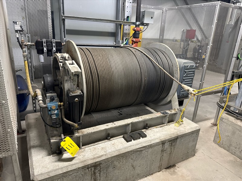 Jeamar electric lifting winch, mod. WLT4000-40-BB, ser. no. 9765 (2016), 30 kW, 16 in dia. X 40 in. drum, 9/16 in. rope, 5700 lbs./200 ft./min./300 ft. cap. c/w starter and transformer [Loc. FAR]