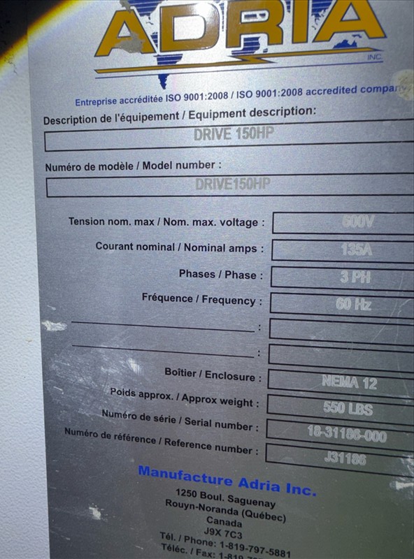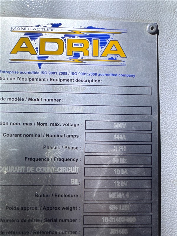 (3) drives, incl.: (2) Adria 150 hp, 600V and (1) MegaLab/Benshaw 250 hp [Loc. Blue Zone, Level M]