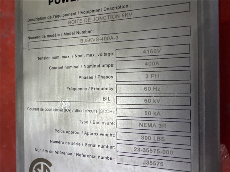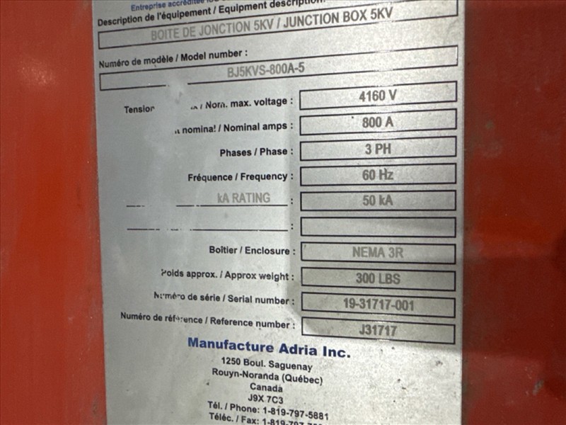 (9) junction boxes, 4160V [Loc. Blue Zone, Level M]