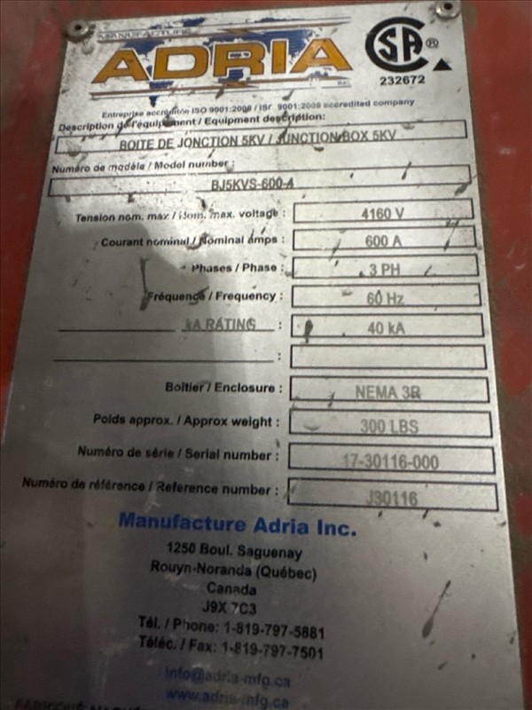 (6) junction boxes, 4160V [Loc. Blue Zone, Level M]