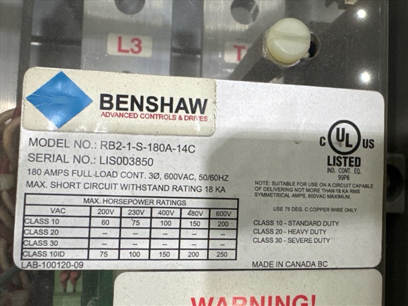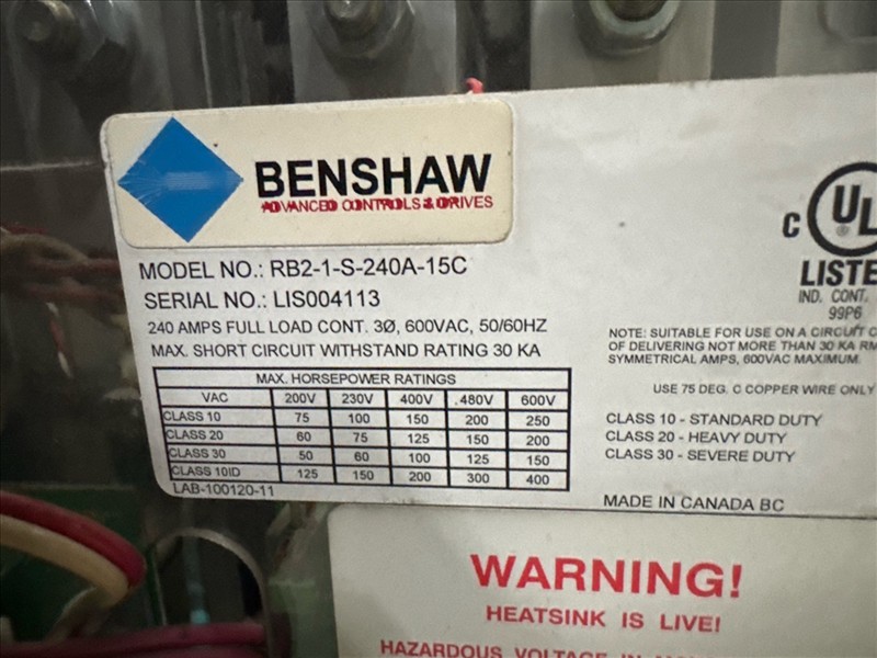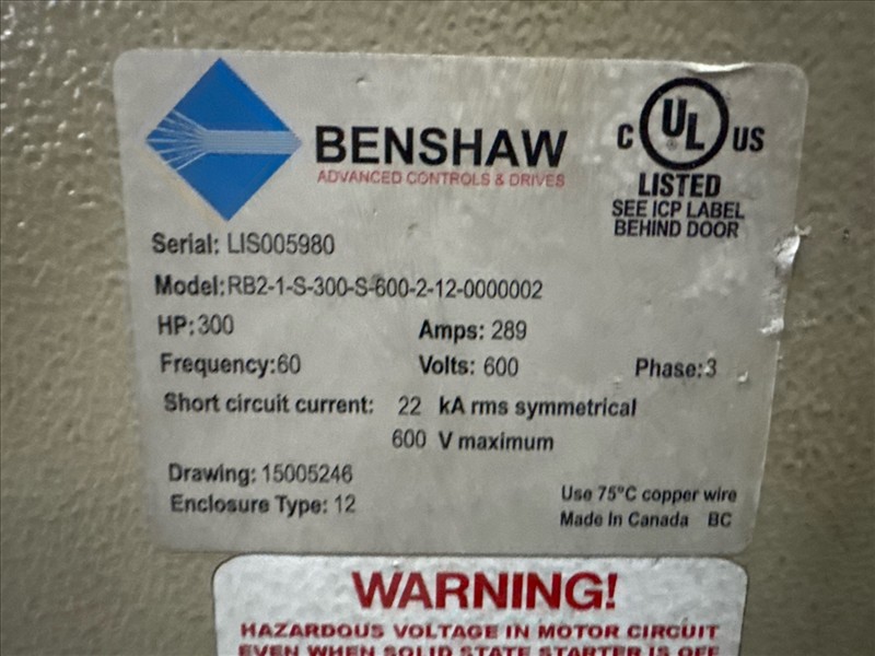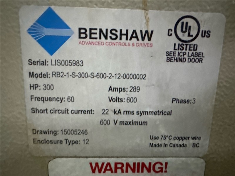 (5) Benshaw drives, mod. RB2-1-S-600-2-12-0000002, 300 hp, 600V, 289A, 60 hz, 3 ph [Loc. Blue Zone, Level M]